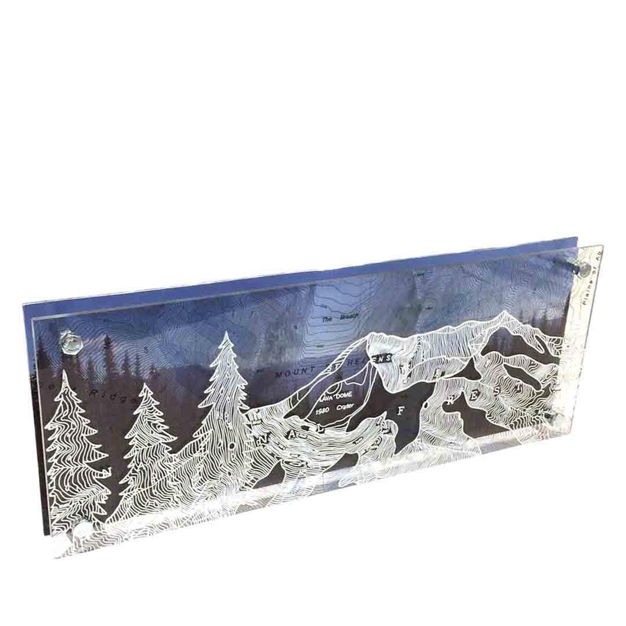 MT306 $170 - 16x6 - Mountain Trees Mt St Helens Floating Frame Map Wall Art