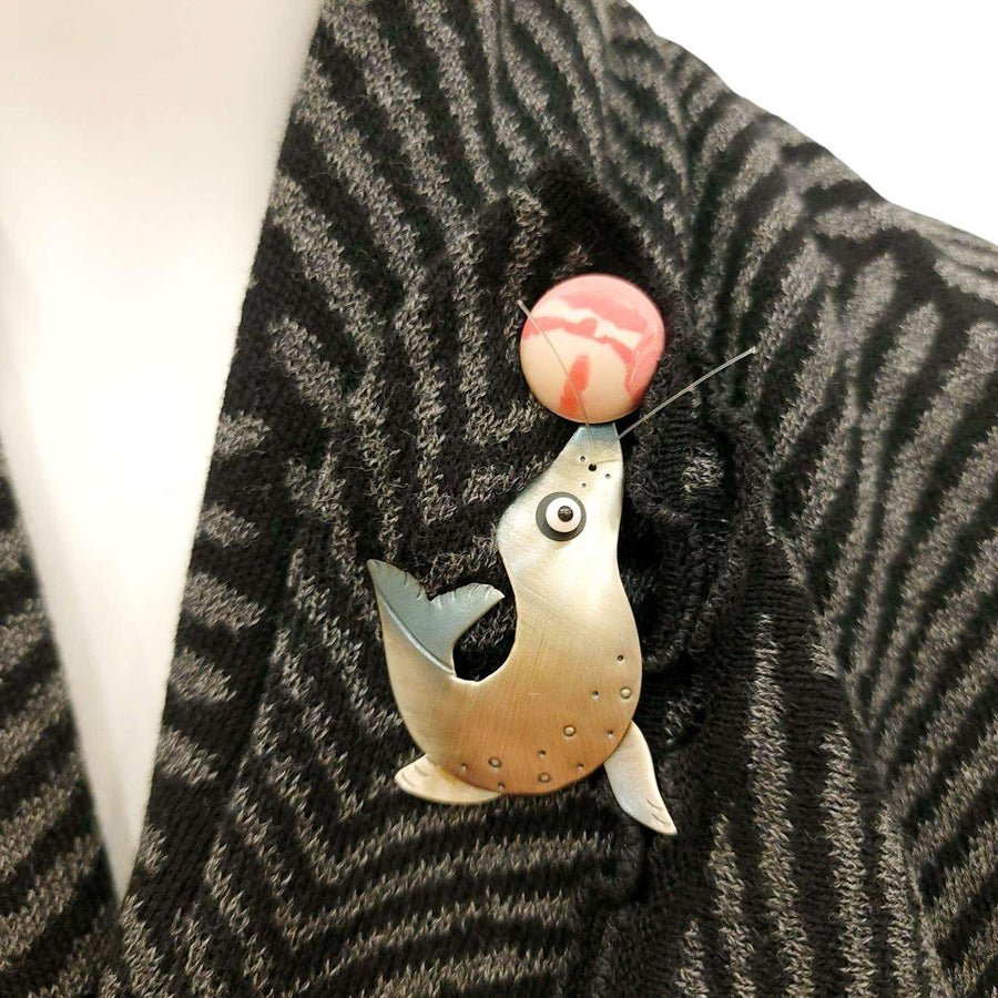 - A cute performing seal made of hand-formed and hand-textured nickel silver balancing a ball on its nose