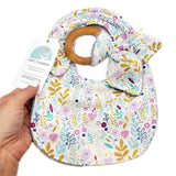Gift Set - Wildflowers on White Bib and Teething Ring by Port and Starbird
