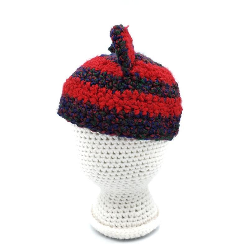 Soft acrylic yarn crocheted in bright red and navy blue for toddlers 1 to 4 years old.