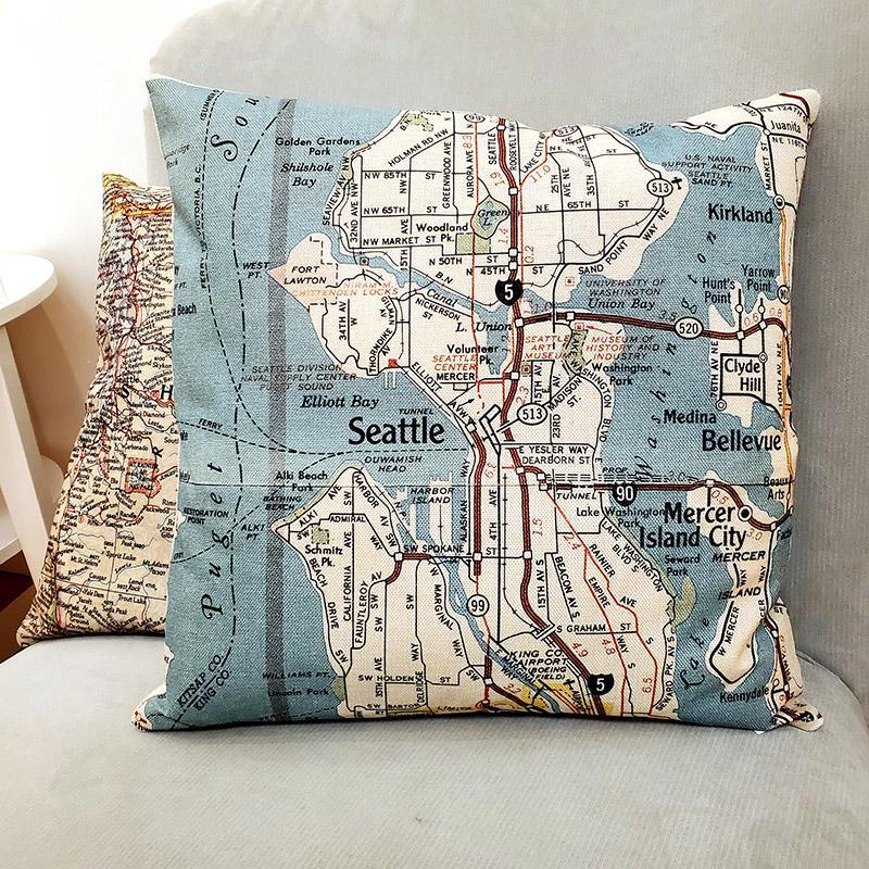 Pillow - Seattle Street Map by Daisy Mae Designs