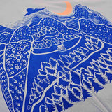 Night Ride is screen printed in bright Blue and Peach ink on Light Gray 100% cotton tees.
