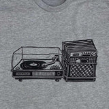 Hey, DJ! Turn it up with this heather gray comfy tee with a classic turntable and rack of vinyl printed on the front in black ink.