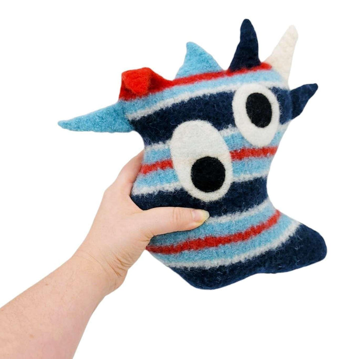 Hat - Felted Wool Cap in Blue Green Stripe (Assorted Sizes) by Snooter-doots