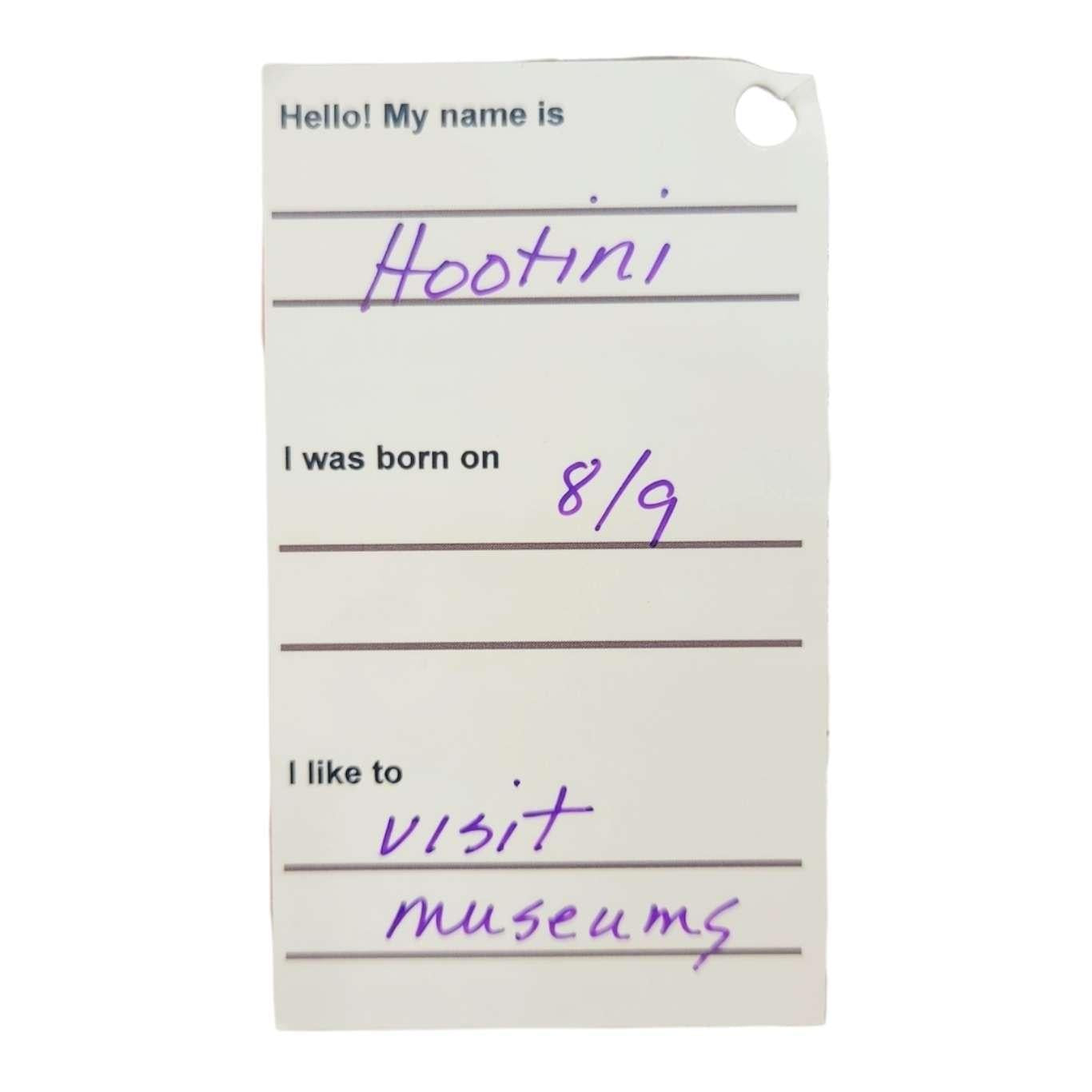 - Hootini: Born on 8/9, likes to visit museums
