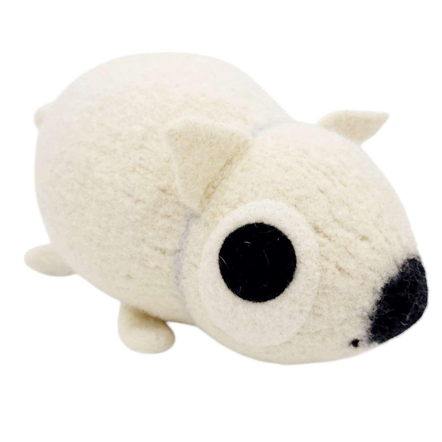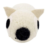 Hand-knit to about 3x its finished size, Mama puts the 100% wool form into a hot soapy washer to shrink and "felt" the knit fabric down to just the right size then stuffs it firmly with new fiberfill. Final details and signature 'Doot eyes are added by needle felting, and a Snooter-doot is born!