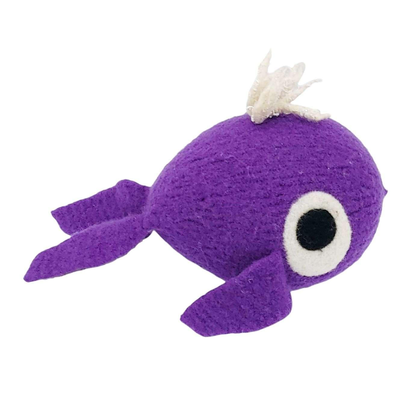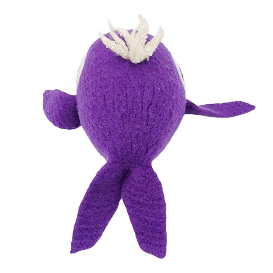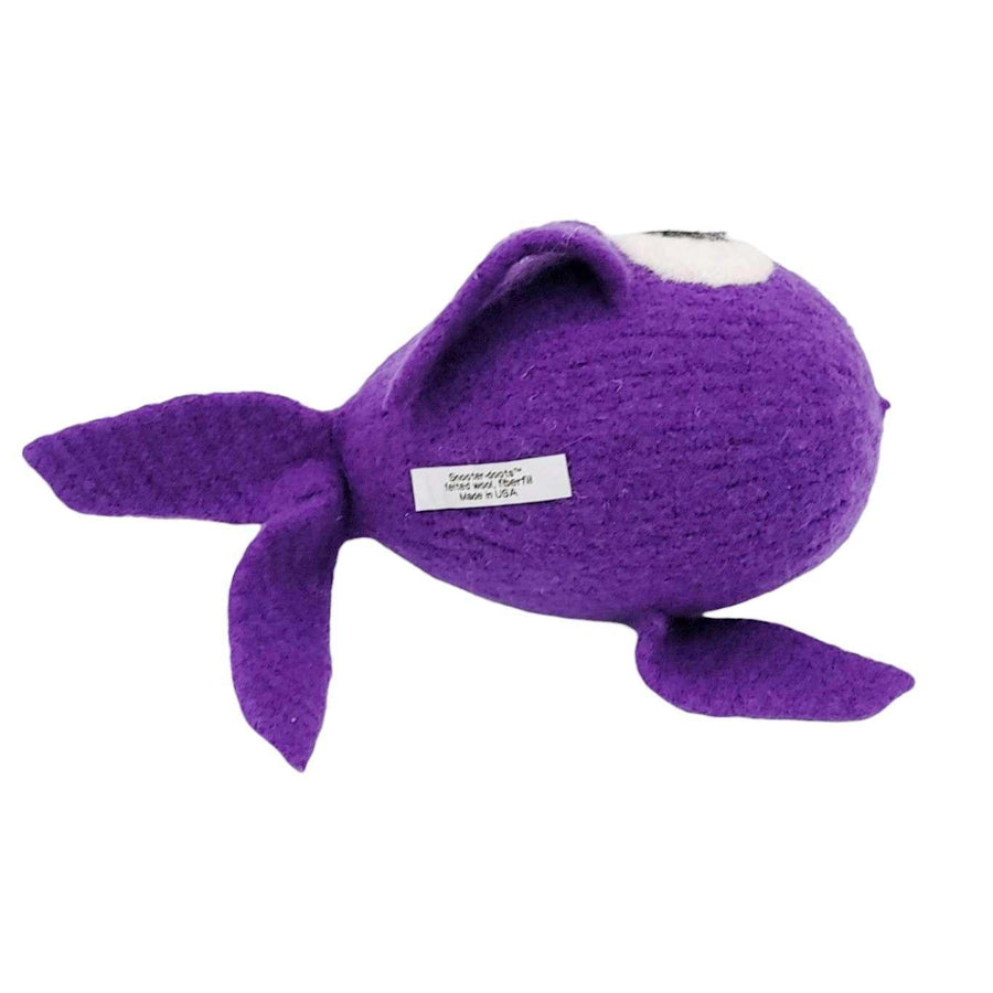 Take home your new whale friend created by Mama Snooter of Snooter-doots! Hand-knit to about 3x its finished size, Mama puts the 100% wool form into a hot soapy washer to shrink and "felt" the knit fabric down to just the right size then stuffs it firmly with new fiberfill. Final details and signature 'Doot eyes are added by needle felting, and a Snooter-doot is born!