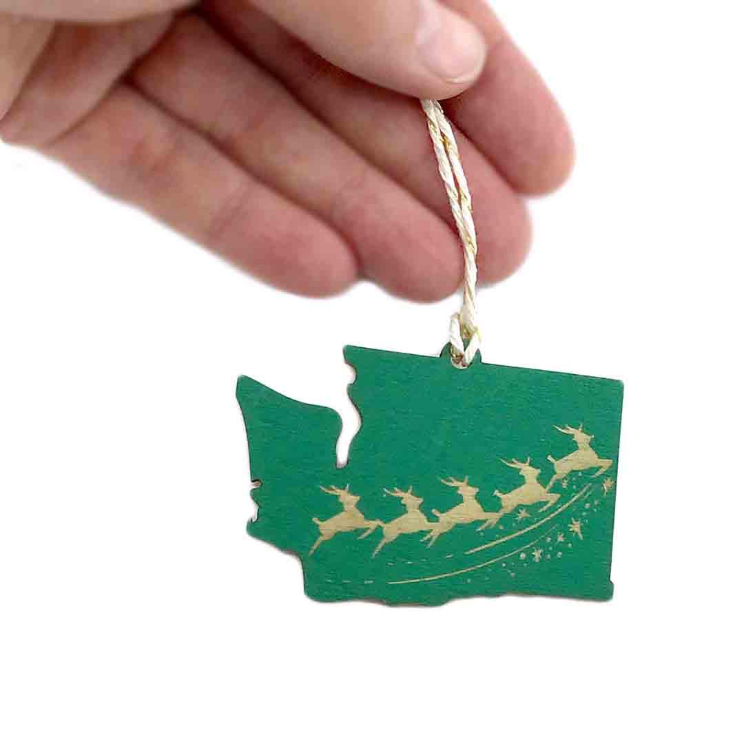 SM605G $8 - Holly Green- Reindeer WA State Ornament