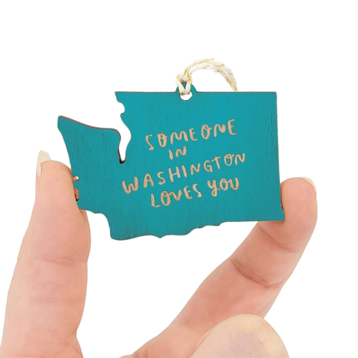 SM503AB $8 - Aqua Blue - Someone Loves You WA State - Small Wooden Ornament
