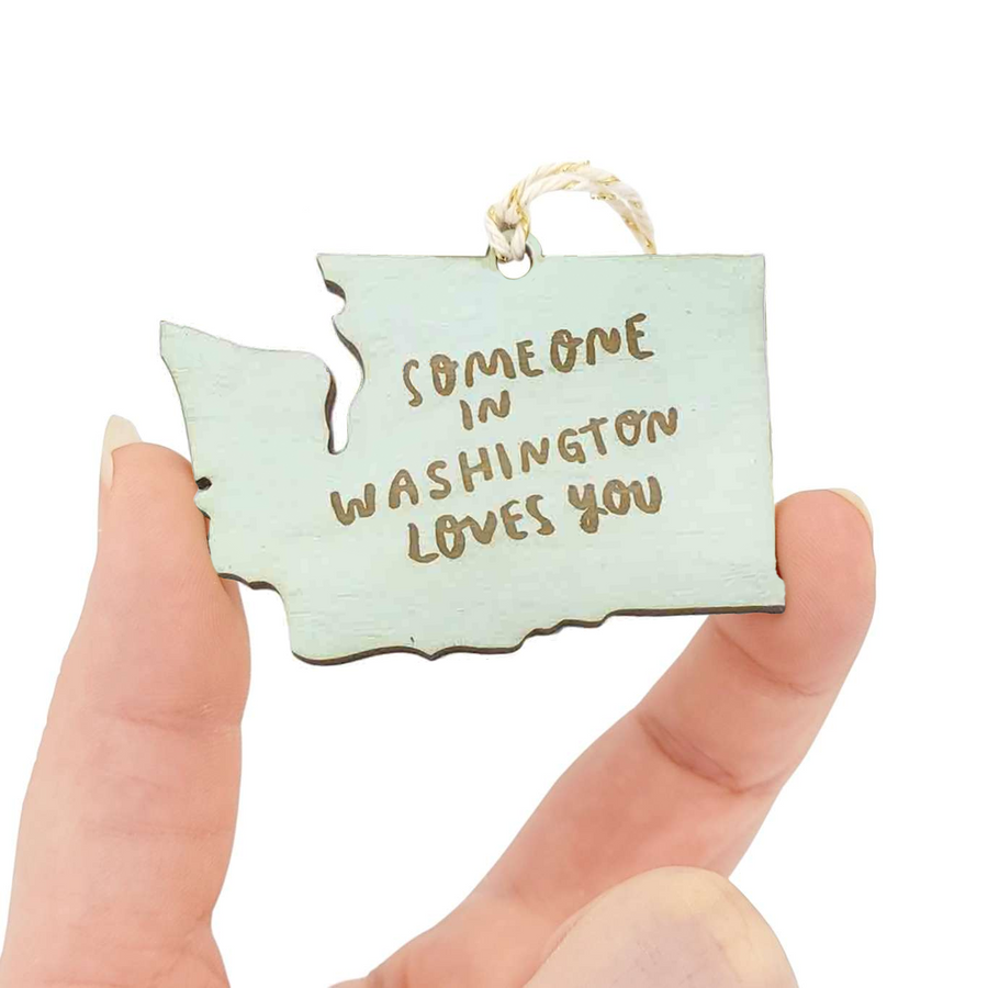 SM503SG $8 - Seafoam Green - Someone Loves You WA State - Small Wooden Ornament