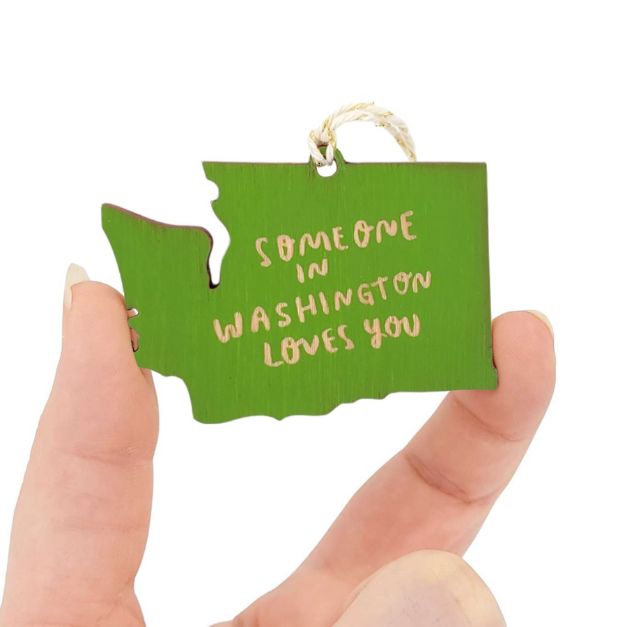 Wooden Ornament - Small - Someone Loves You WA State (Assorted Colors) by SnowMade