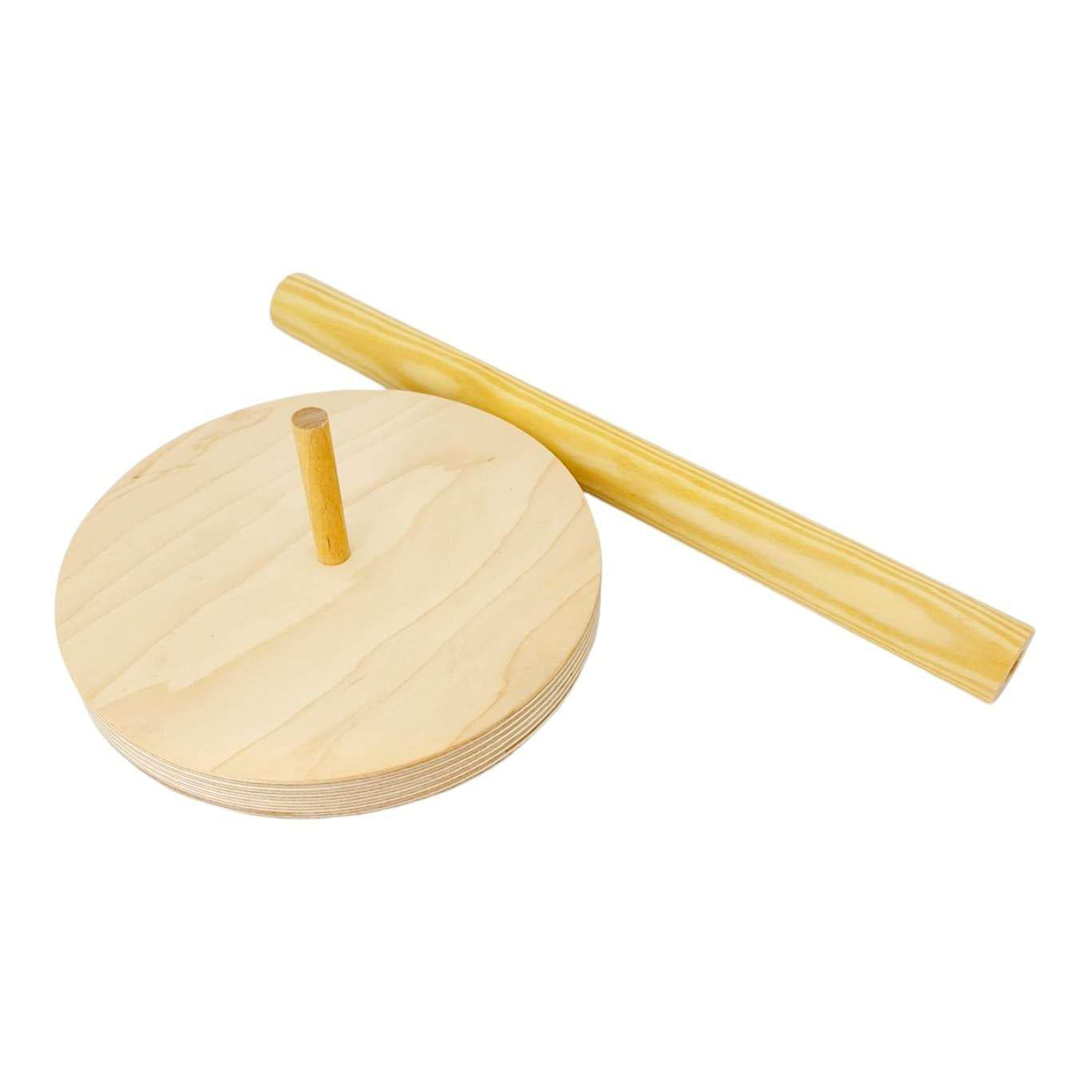- Measurements: Base measures approximately 1/2in H x 6in diameter; dowel measures 12in L x 1in diameter