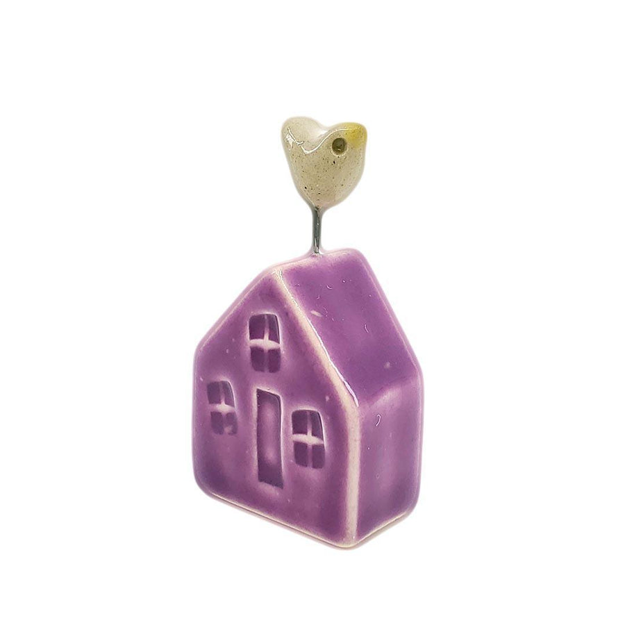 Tiny Pottery House - Magenta with Bird (Assorted Colors) by Tasha McKelvey