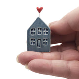 Tiny Pottery House - Dark Teal Glossy with Heart (Pink or Red) by Tasha McKelvey