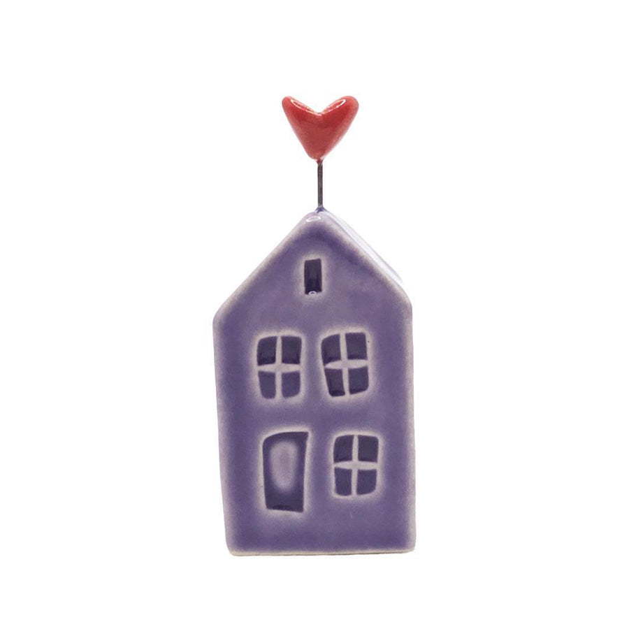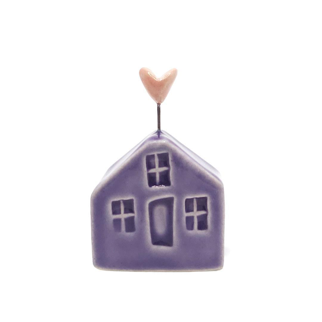 Tiny Pottery House - Purple with Heart (Pink or Red) by Tasha McKelvey