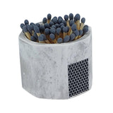- Hand-poured concrete match holder in an elegant octagonal shape