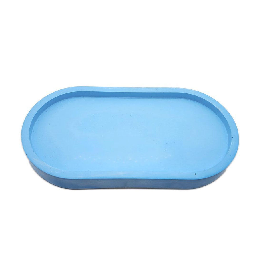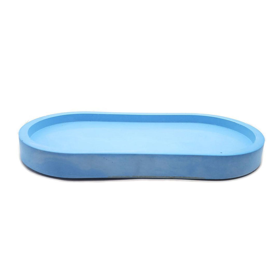 - Hand-poured concrete tray in an elegant pill-inspired oval shape
