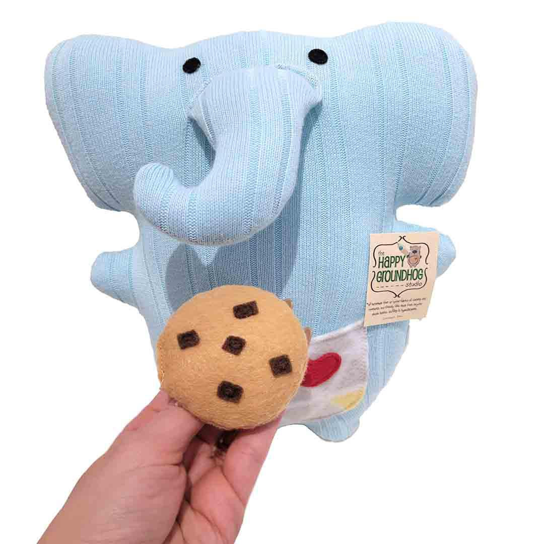 Plush - Elephant with Choco Chip Cookie Treat by Happy Groundhog Studio