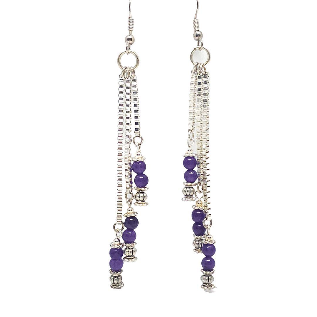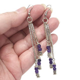 TAE204 $30 - Long Triple Box Chain Amethyst Earrings
