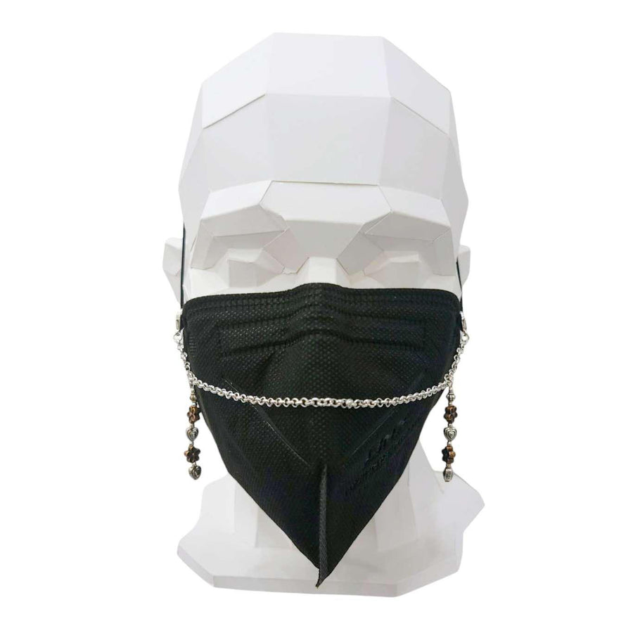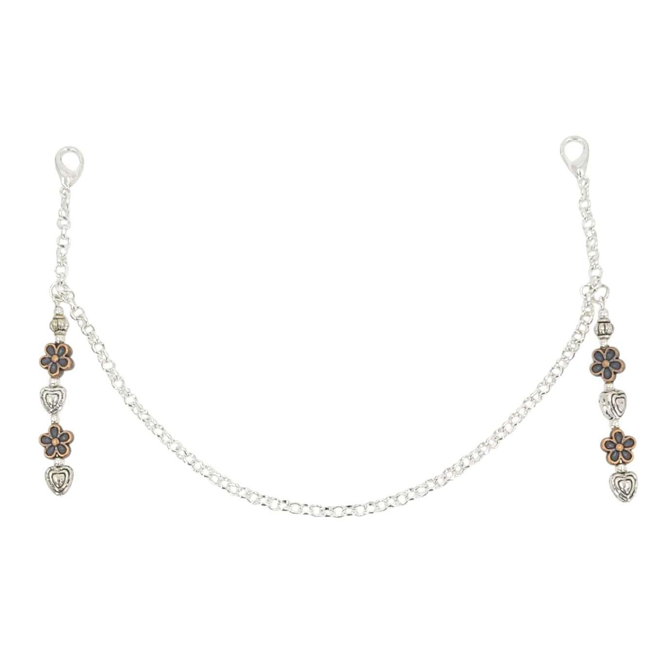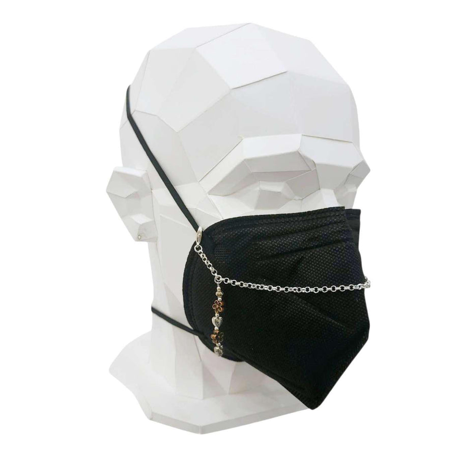 This mask chain features a long copper flowers and silver hearts drop charm at each side connected by a simple chain.