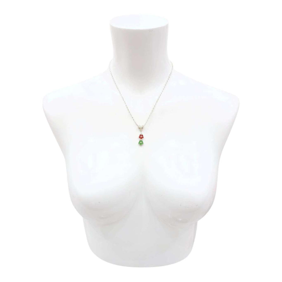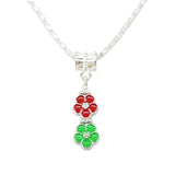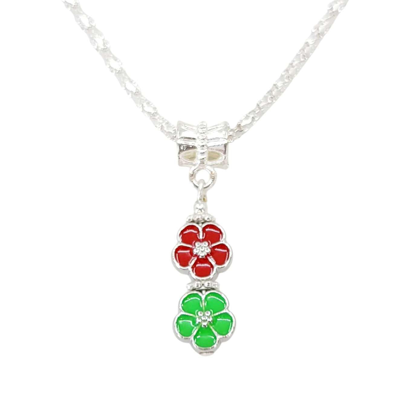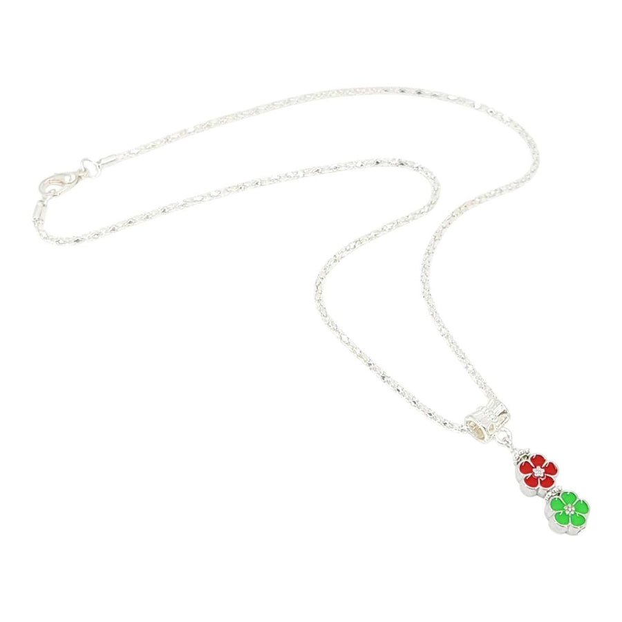 Necklace - Double Small Flower Pendant (Red Green, Silver Plate) by Tiny Aloha