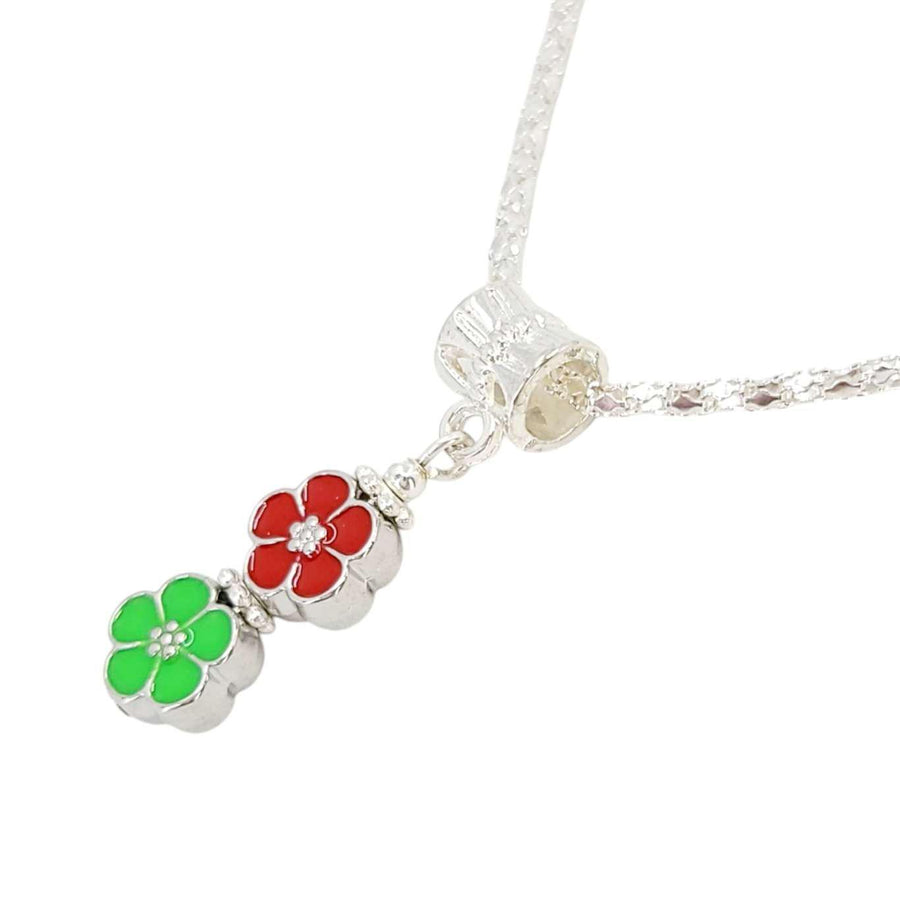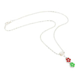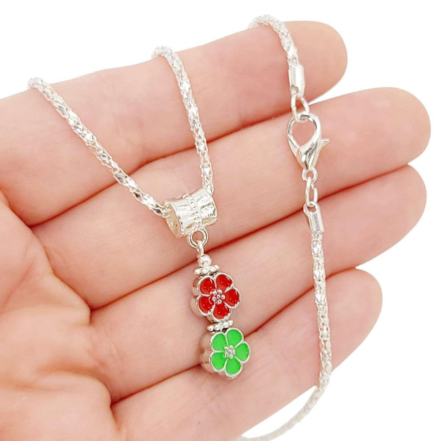 • Small red and green flowers on silver plate chain