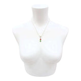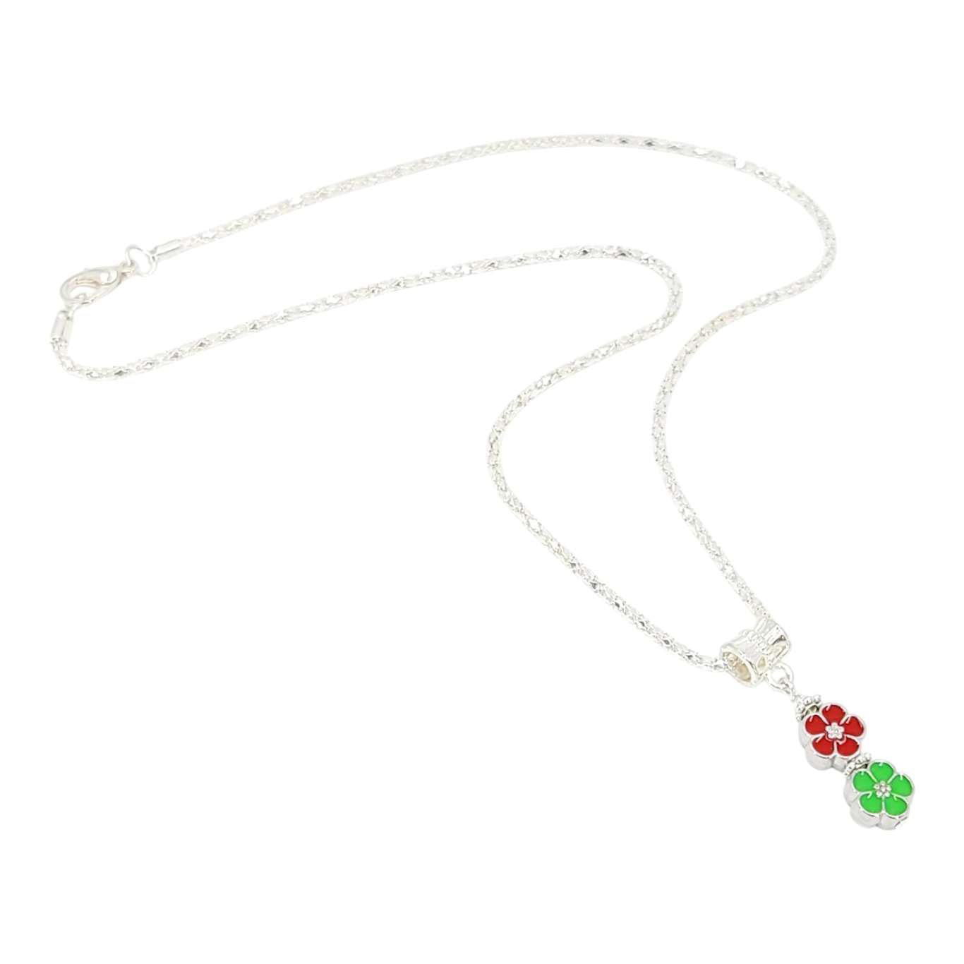 TAN260 $36 - Red Green Double Small Flower Pendant Silver Plate Necklace