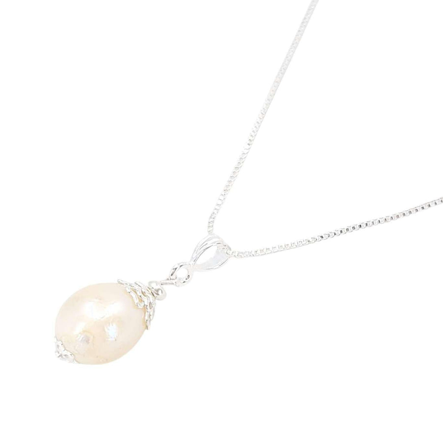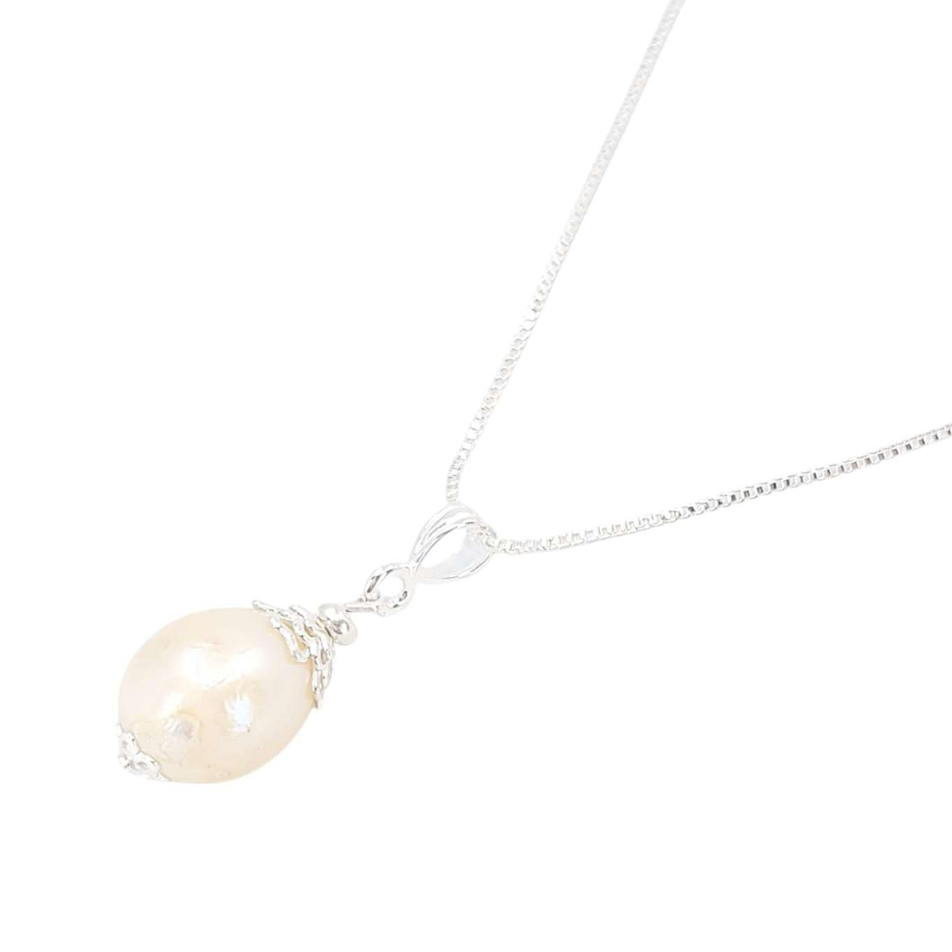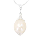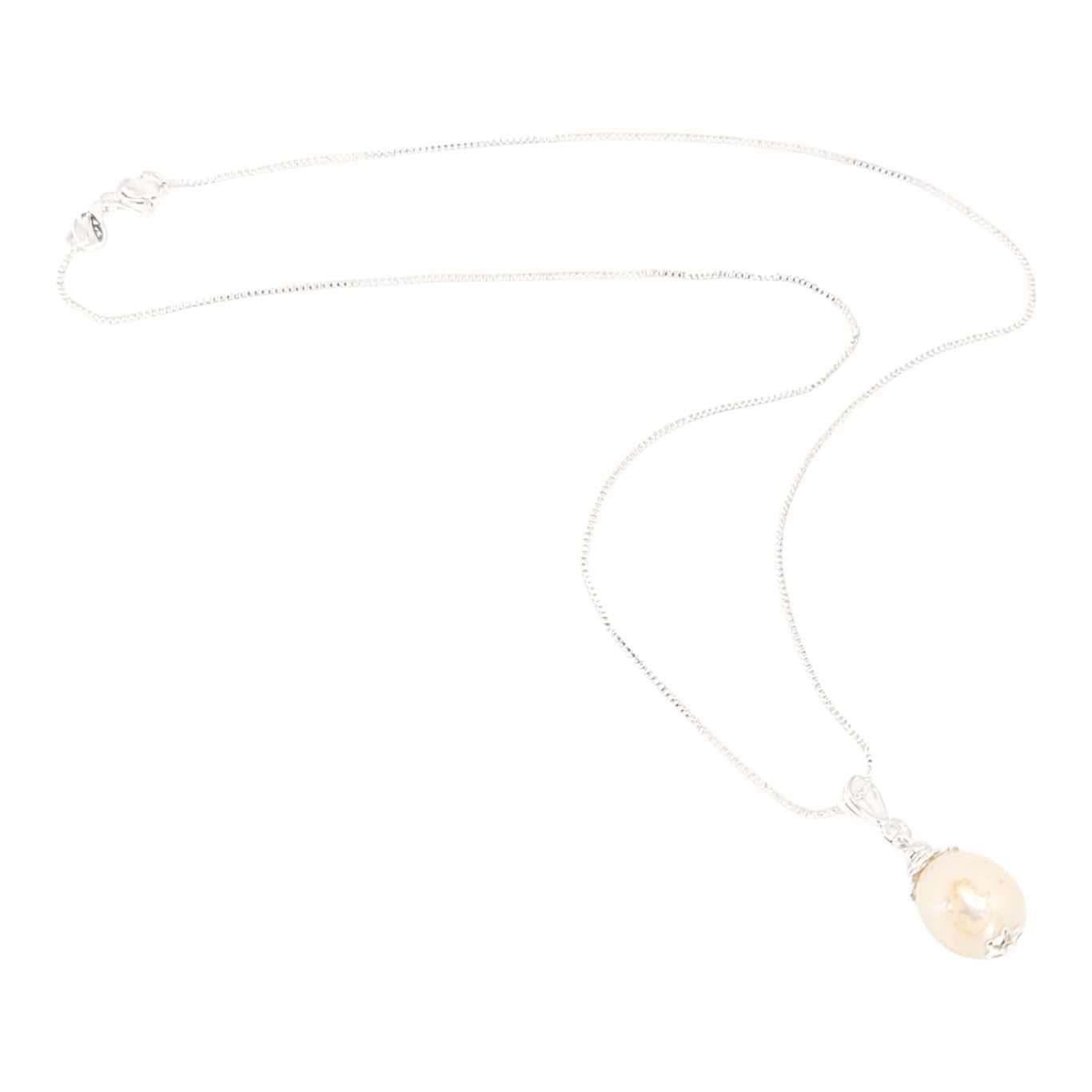 A large cream-colored freshwater pearl dangles from a silver plate box chain on this elegant, classic necklace.