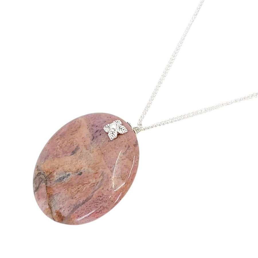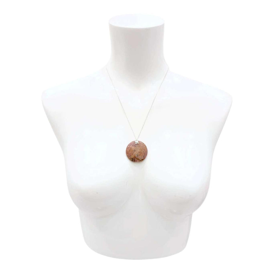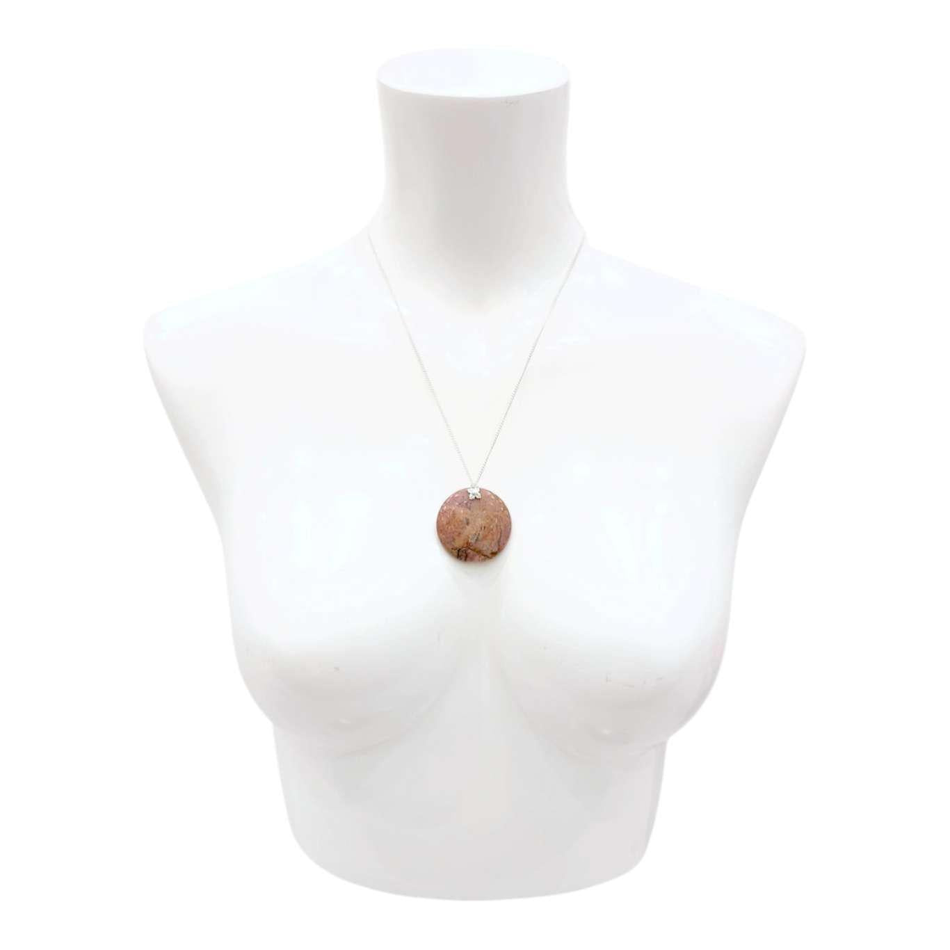Necklace - Large Stone Coin Pendant (Rhodonite, Silver Plate) by Tiny Aloha