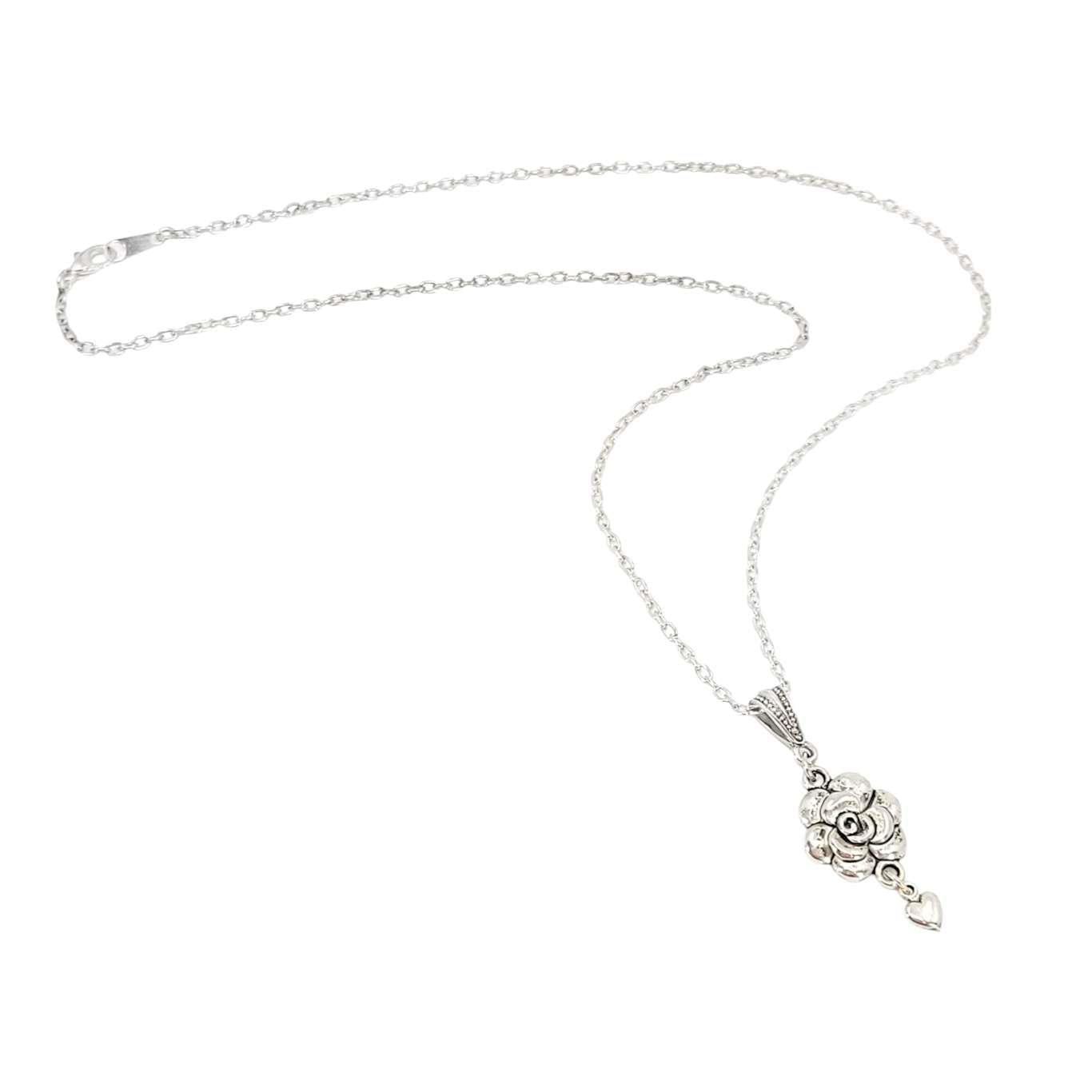 TAN249 $35 - Silver Plate Rose Heart Pendant Necklace
