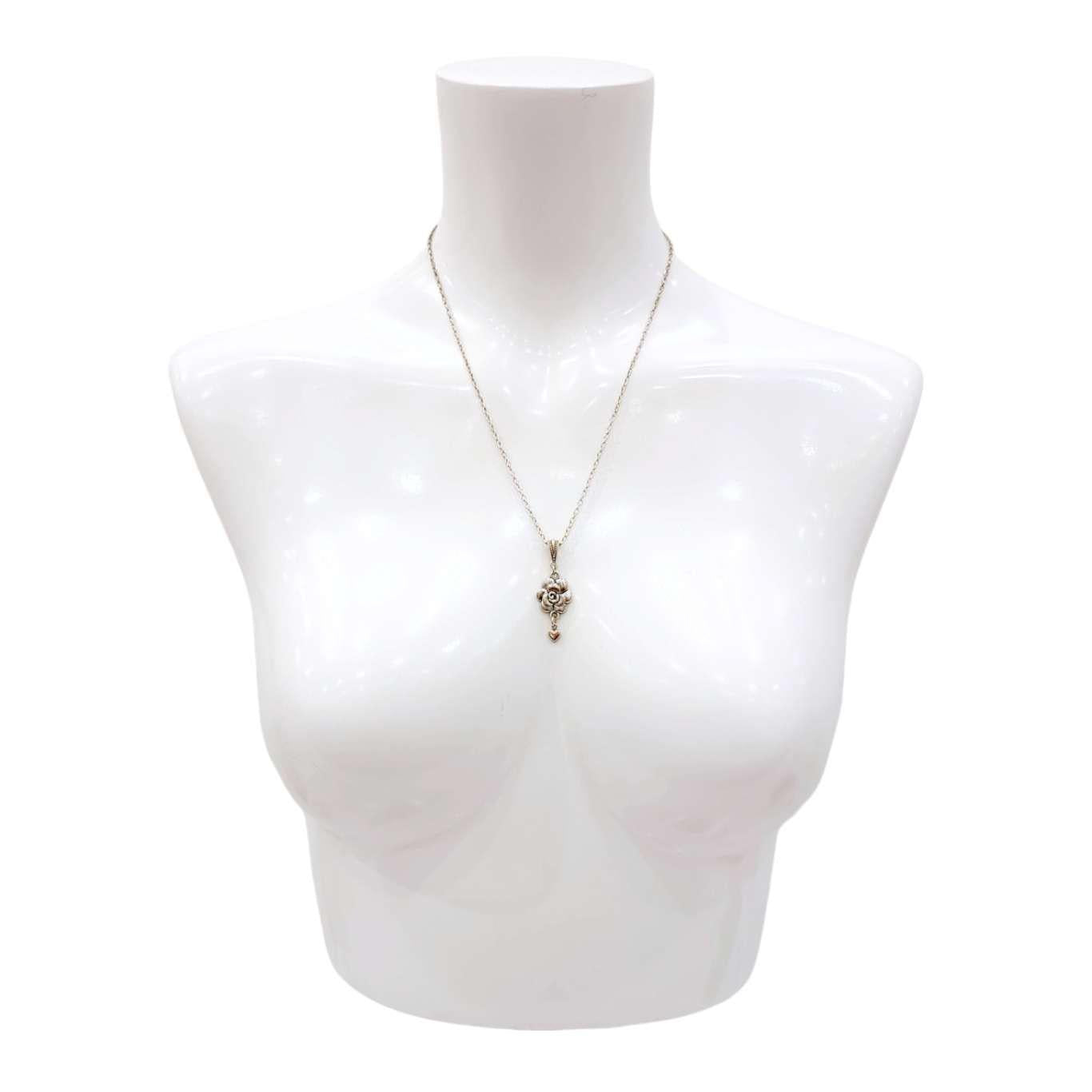 A perfect design for the romantic at heart, this three-dimensional rose pendant has a teeny tiny little heart dangling from the bottom.