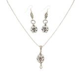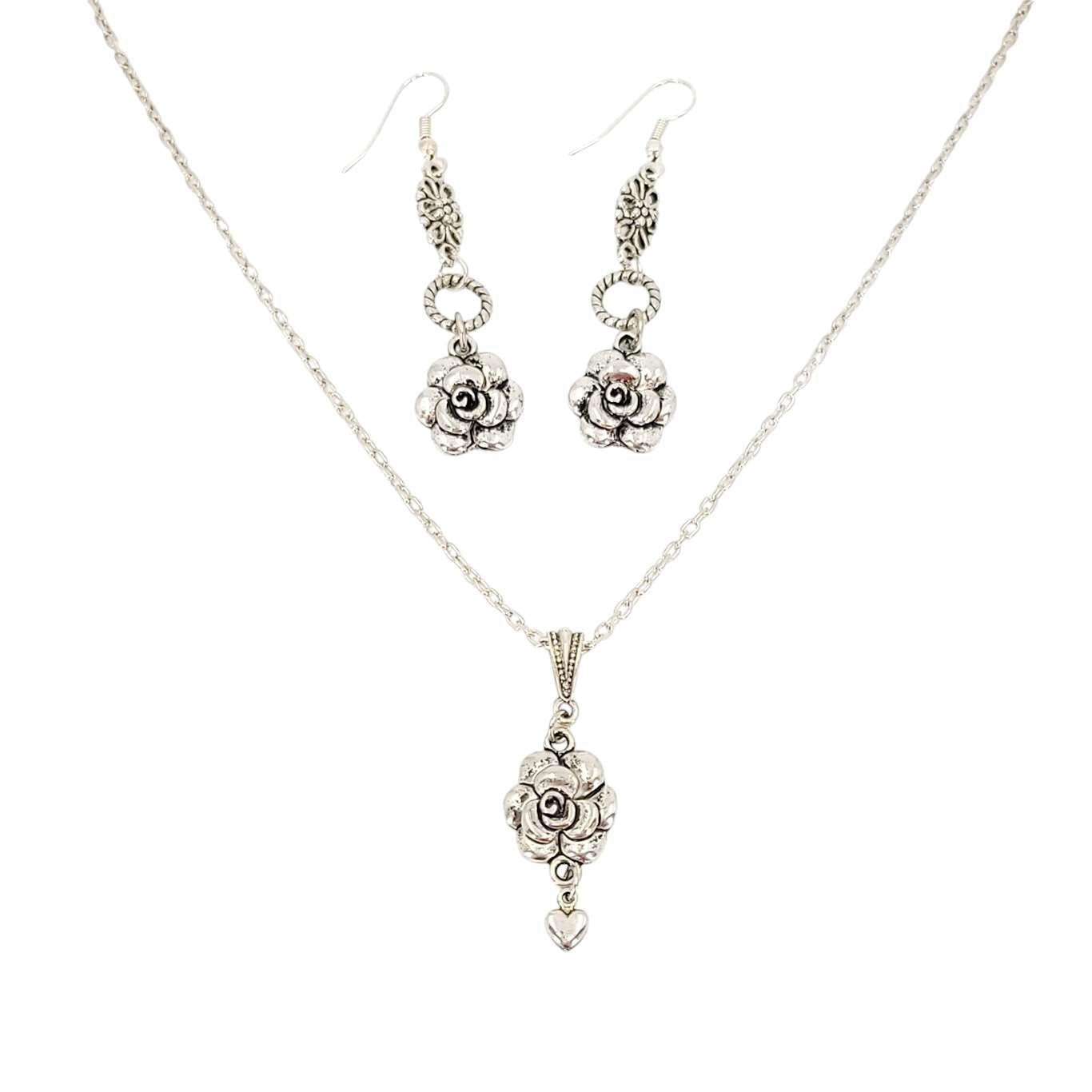 TAN249BUN $55 - Silver Plate Rose Heart Pendant Necklace and Earrings Bundle