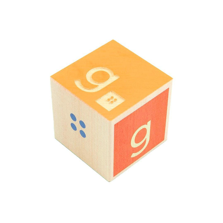 Uncle Goose strategically devoted one letter to each block. This means you'll discover the same Braille letter debossed on two sides of every block. One debossed side is paired with its font equivalent. The other embossed side is Braille only.