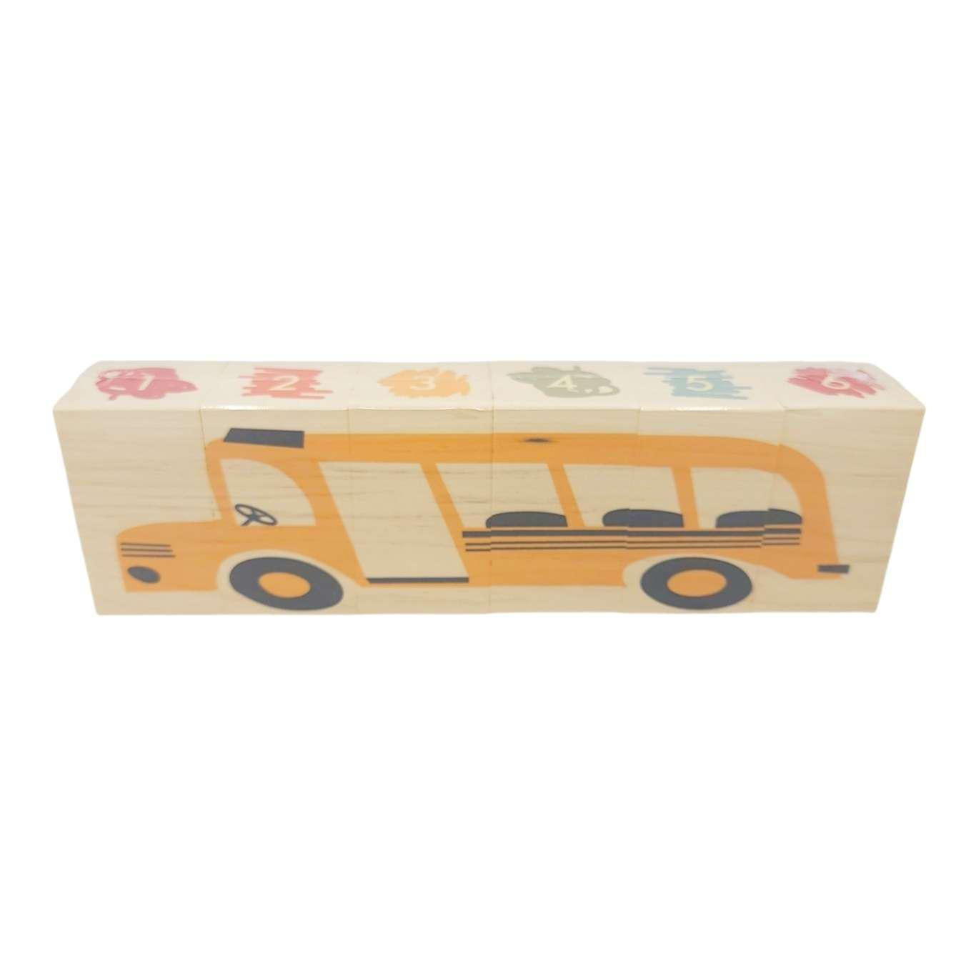 It’s time to go to school! Take the big yellow bus. Learn to write cursive. Measure 18 inches with a ruler. See colored pencils and how they scribble. Count to six. Will you give an apple to your teacher? And will it have a worm in it? More than 6 rectangular blocks, this artful set is a decorative puzzle.