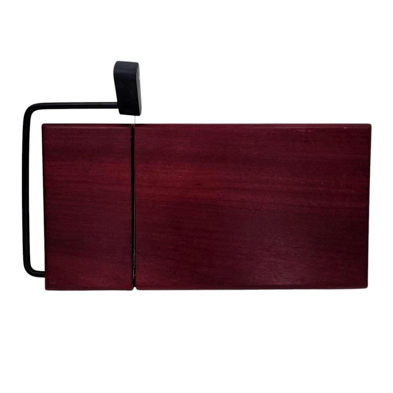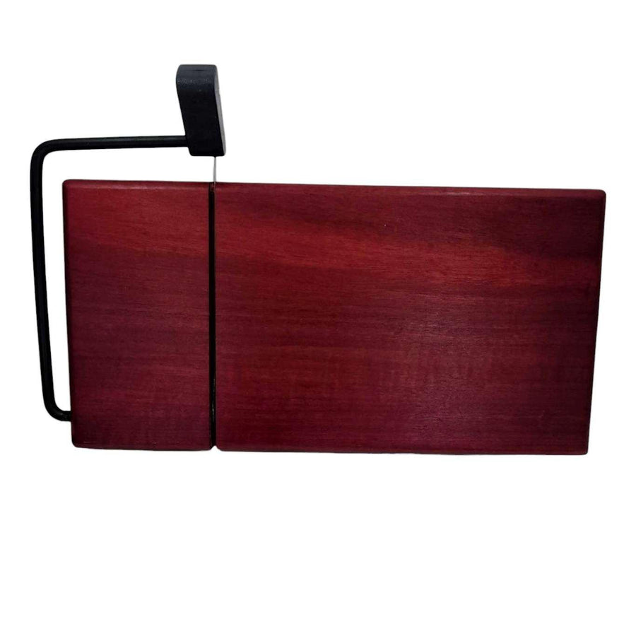Gorgeous purpleheart wood and sturdy wire cheese slicer with a silky smooth finish. No stains or paints here - just the real luster of the high grade wood showing through a hand rubbed mineral oil and beeswax finish.