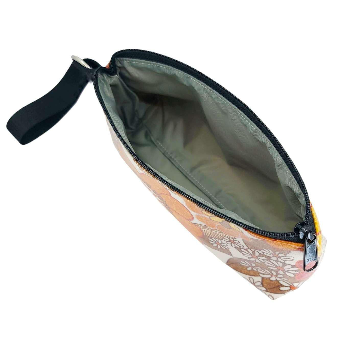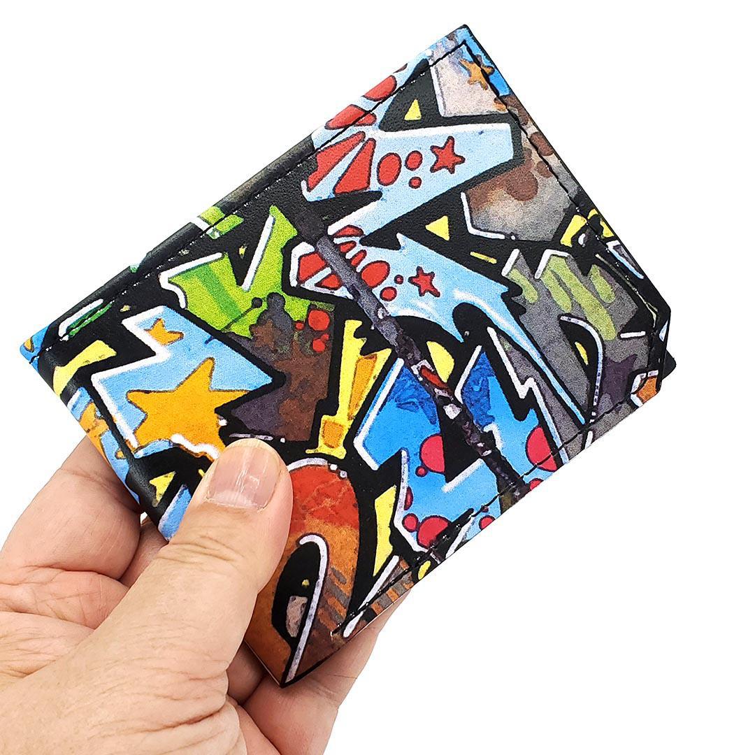 A colorful selection of handmade wallets for women and men, zip pouches, wristlet pouches, coin purses with keyrings, and eyeglass cases.