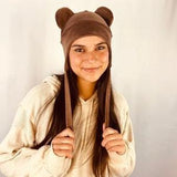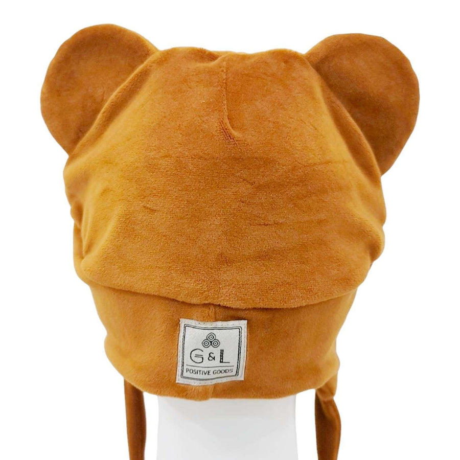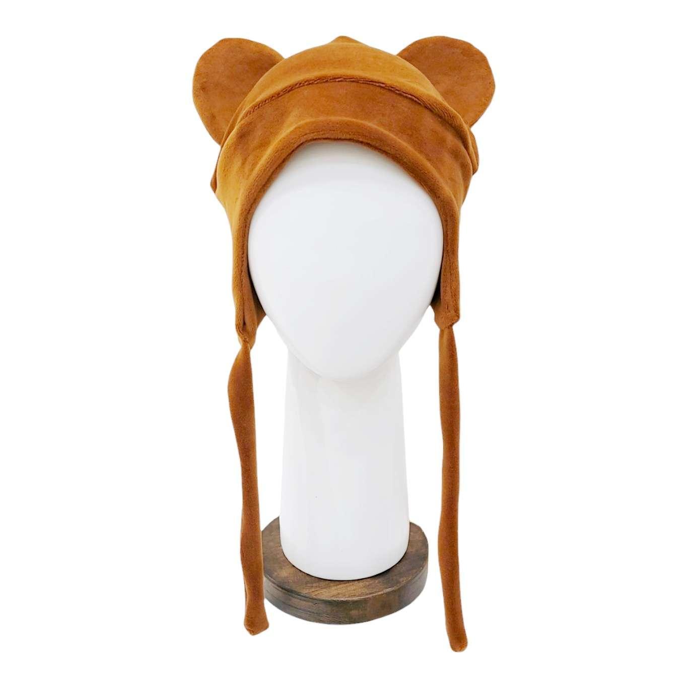 This cozy and fun rust brown "pumpkin" teddy bear hat is made of super-soft velvet that's so stretchy it can fit both kids and adults! The ear flaps and chin tie make it even more snuggly and adorable.