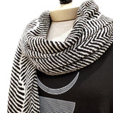 Fern-inspired organic stripes of deep black and light off-white cream cover this luxurious cotton wrap. Soft as cashmere but easier to care for, this pure cotton wrap is machine washable and incredibly versatile; it can be wrapped, draped, worn as a scarf, or used as a light shoulder blanket on a chilly night. Add a belt or pin for even more creative effects!