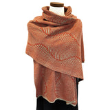 Summery coral and sandy tan are a perfectly beachy match on this gorgeous fern-patterned wrap! Soft as cashmere but easier to care for, this pure cotton wrap is machine washable and incredibly versatile; it can be wrapped, draped, worn as a scarf, or used as a light shoulder blanket on a chilly night. Add a belt or pin for even more creative effects!