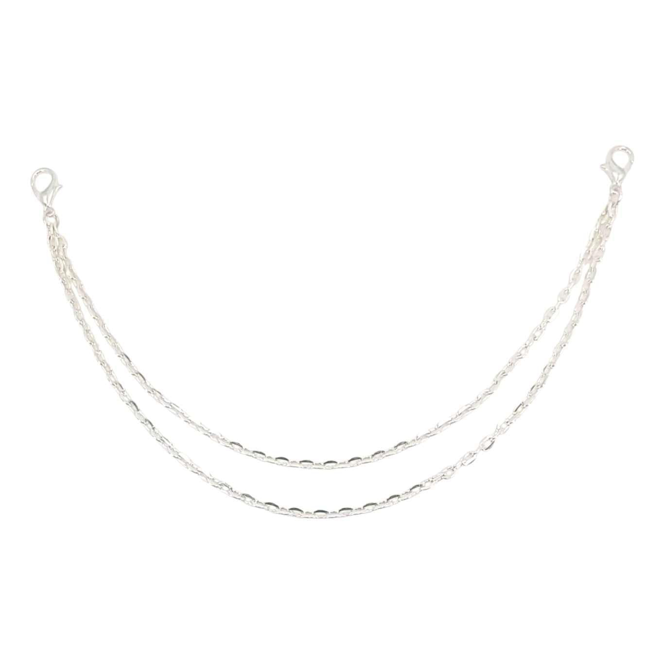 Two silver chains with medium links are draped beautifully to make this mask chain, with one slightly shorter than the other to create an elegant shape.