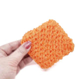 Two (2) long-lasting hand-knit nylon orange scrubbies.