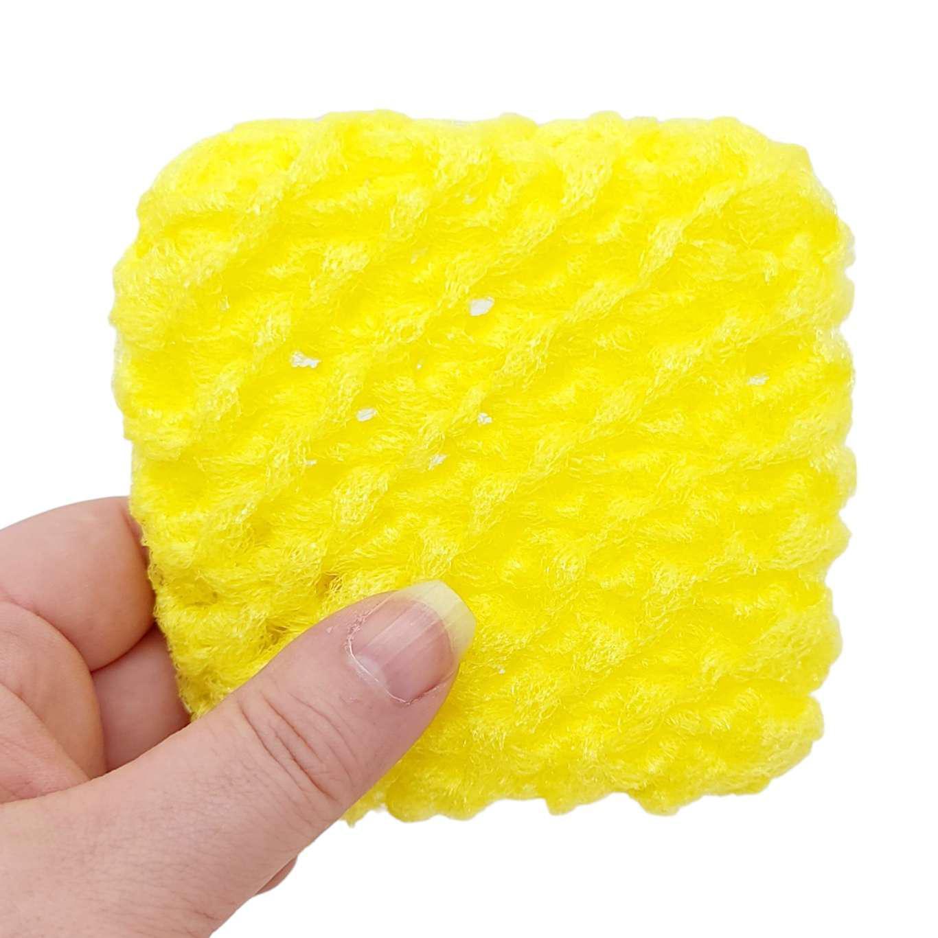Two (2) long-lasting hand-knit nylon yellow scrubbies.