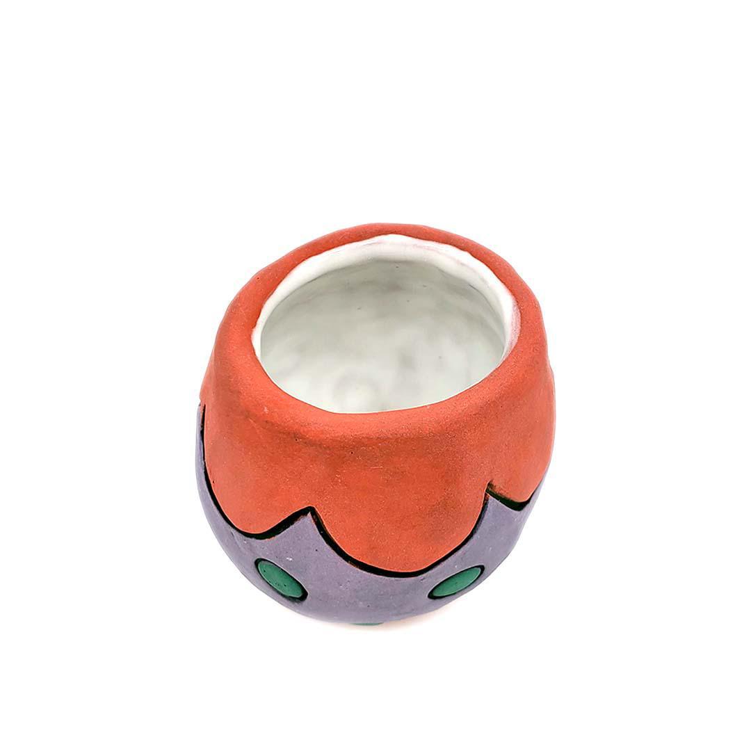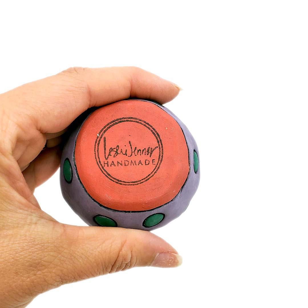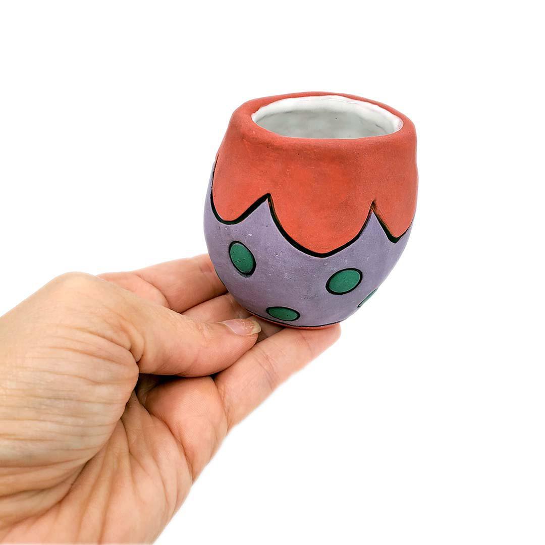 Tiny Cup - 2.5in - Red Scallops Green Dots on Purple by Leslie Jenner Handmade