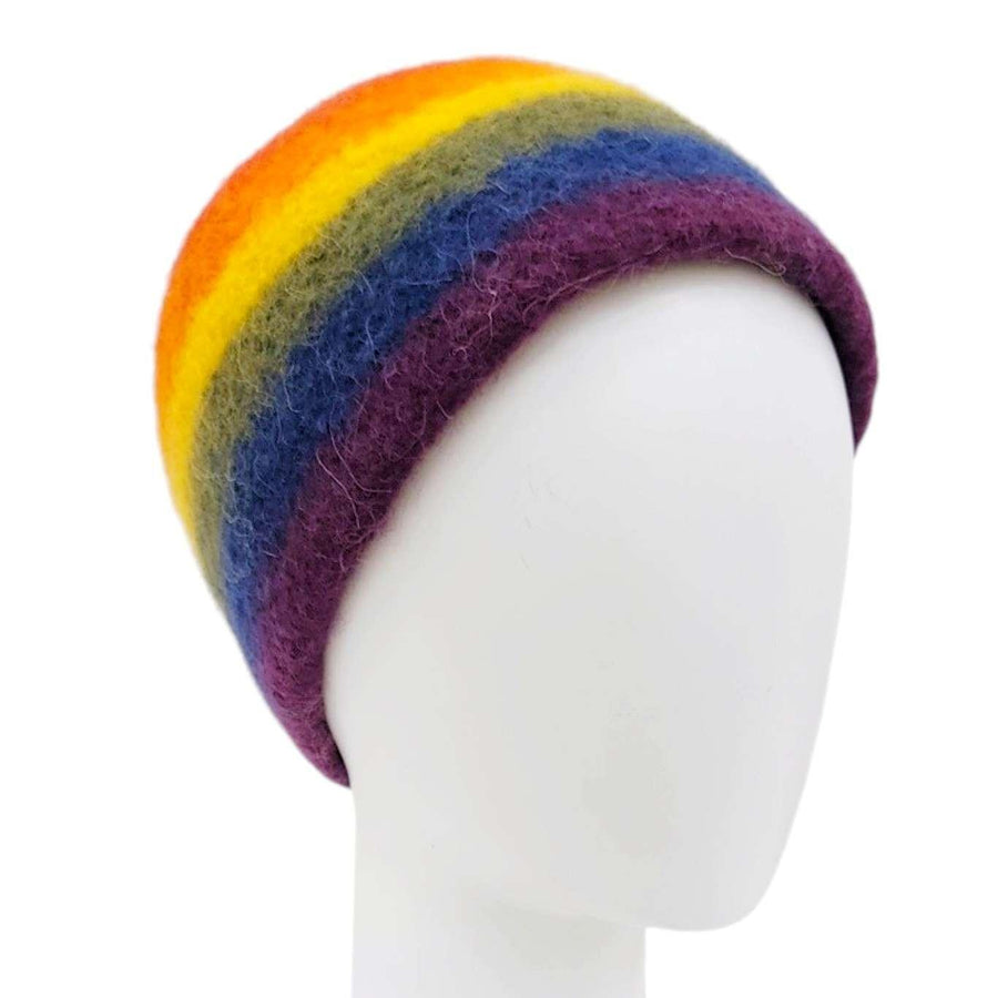 Hat - Felted Wool Cap in Rainbow Stripe (Assorted Sizes) by Snooter-doots
