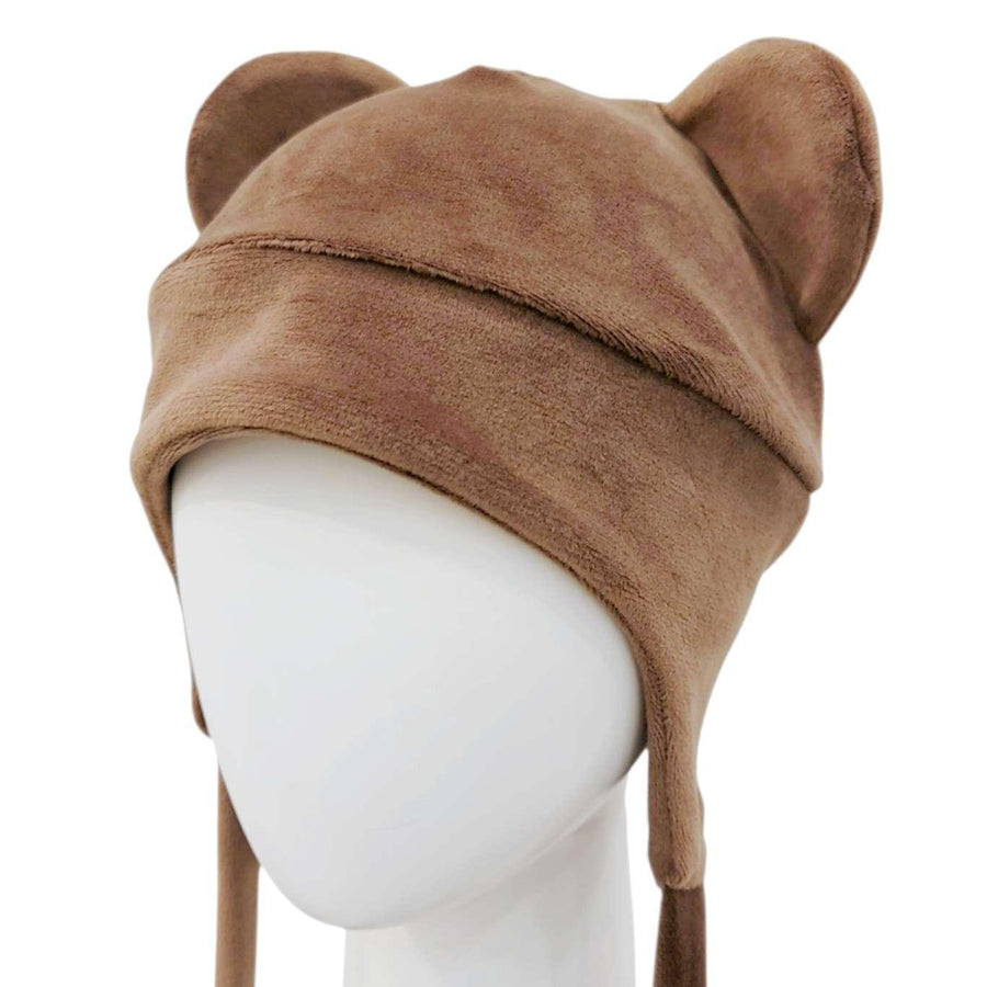 This cozy and fun chocolate brown teddy bear hat is made of super-soft velvet that's so stretchy it can fit both kids and adults! The ear flaps and chin tie make it even more snuggly and adorable.