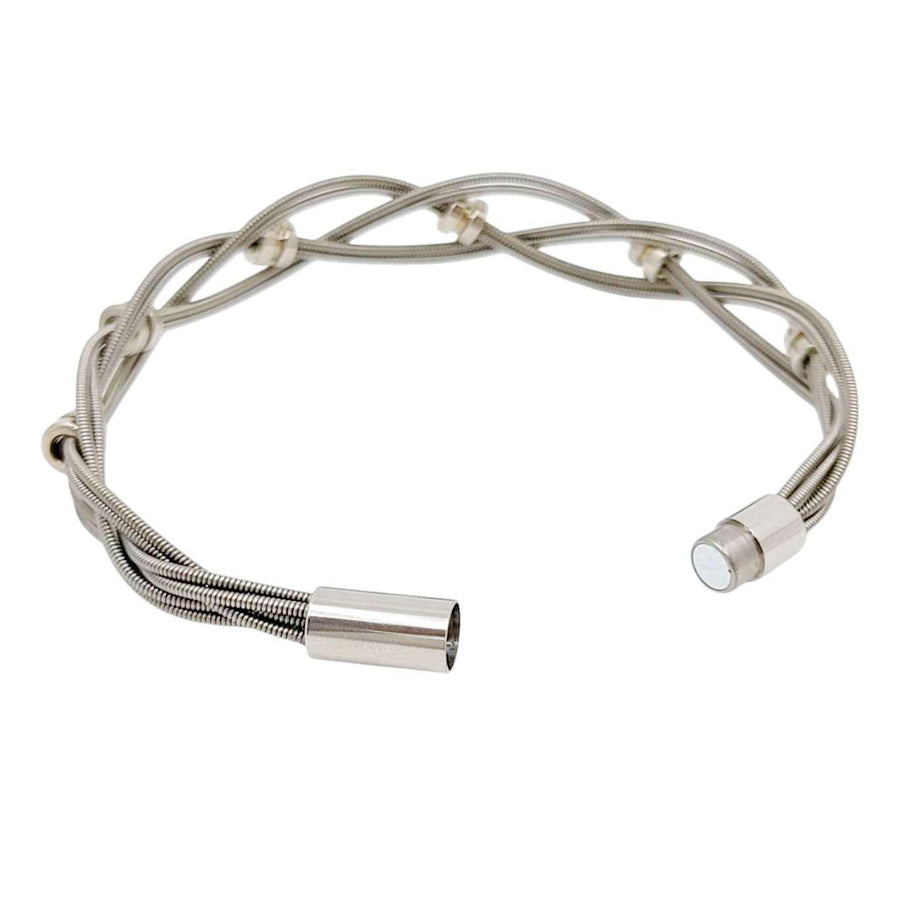 Bass guitar strings braided with bass ball end beads and finished with a strong stainless steel magnet clasp.