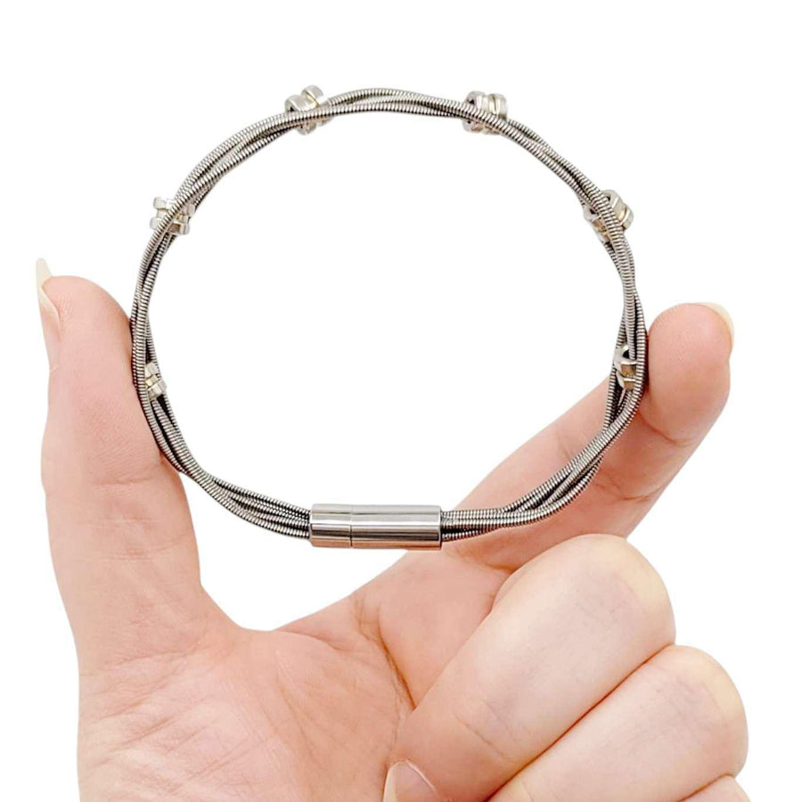 - Materials: Real guitar strings, ball end beads, stainless steel magnetic clasp
