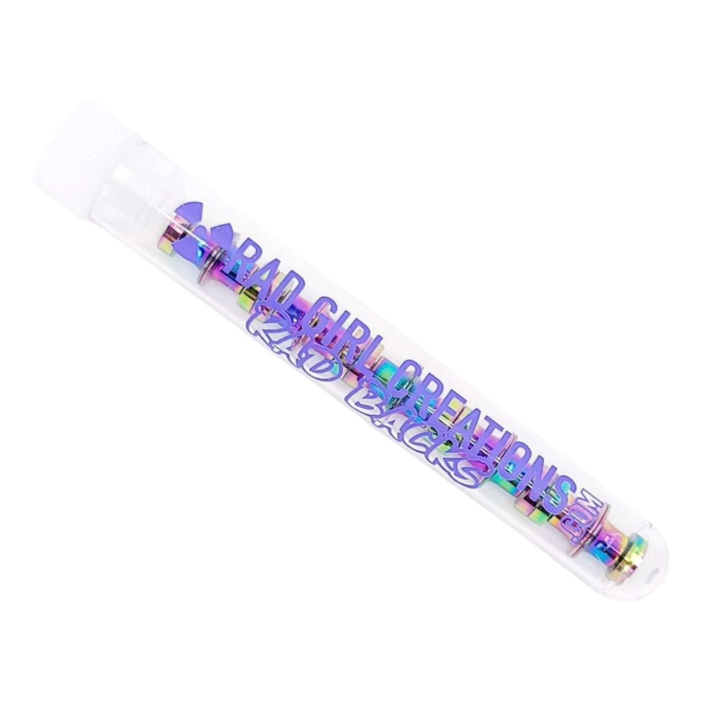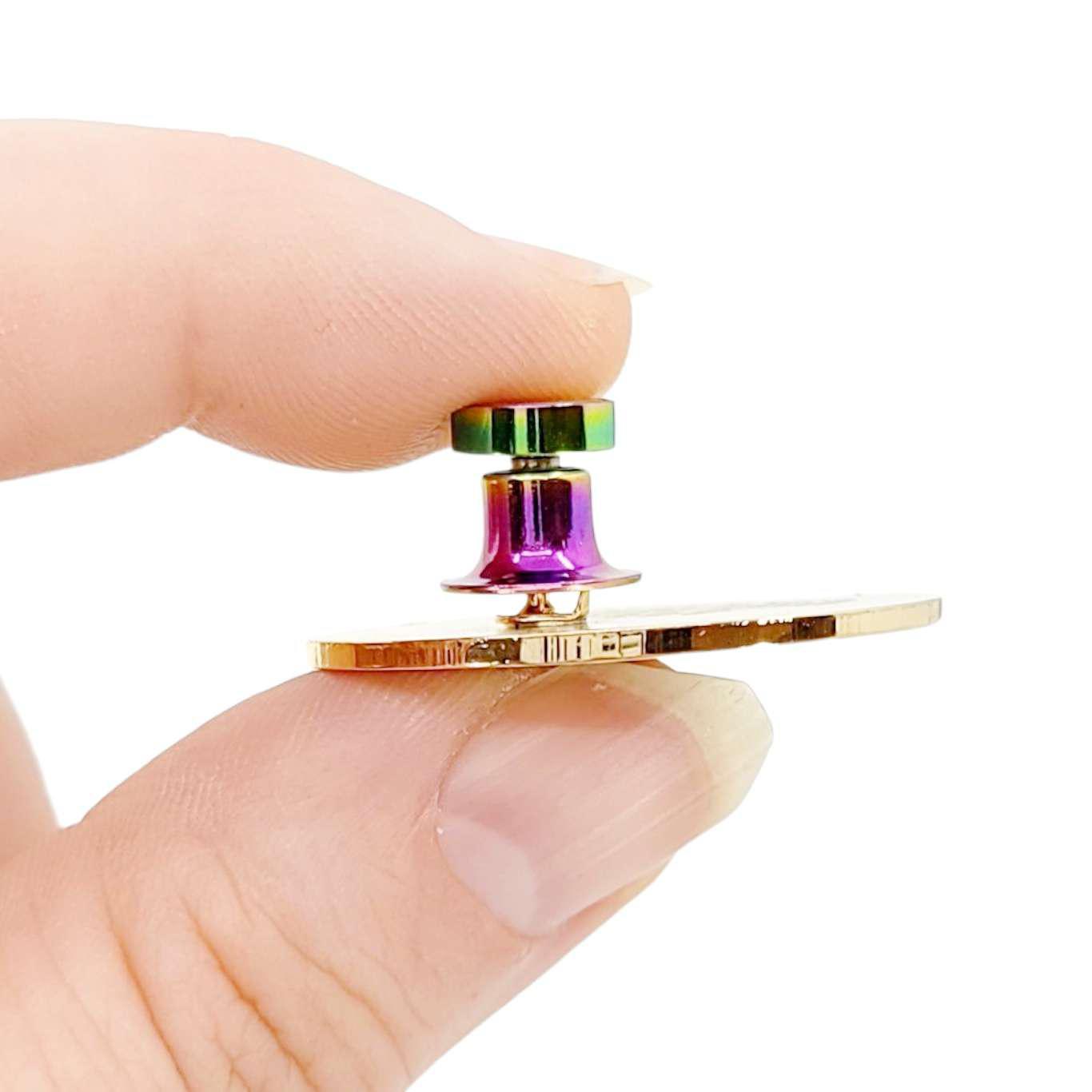 These premium, rainbow anodized, locking magnetic pin backs are the perfect solution for all your flair needs :)