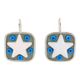 XV301 $55 - White Star - Blue Beads - Square Star Baby Earrings