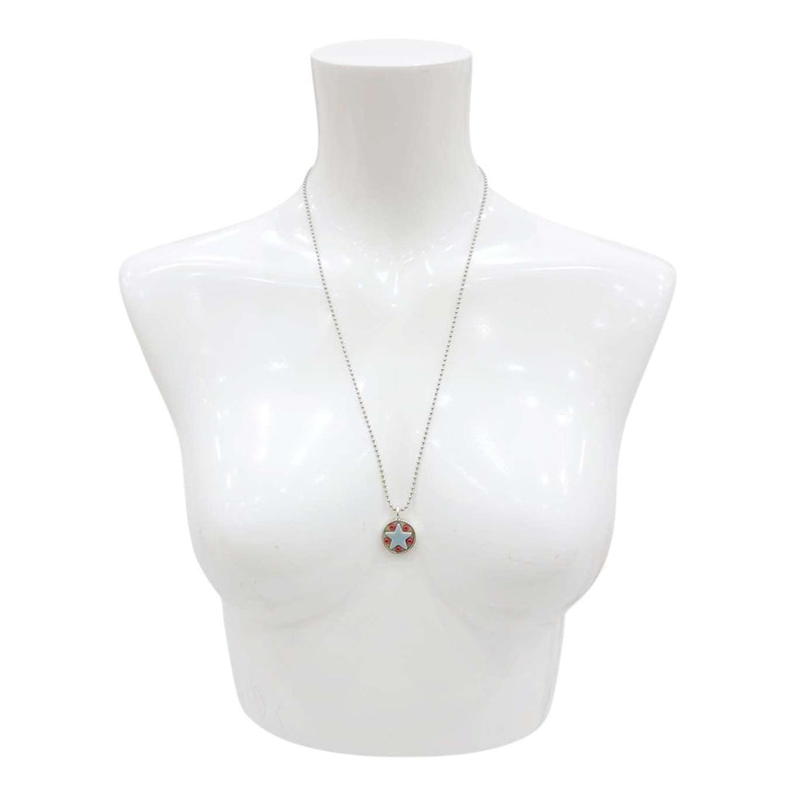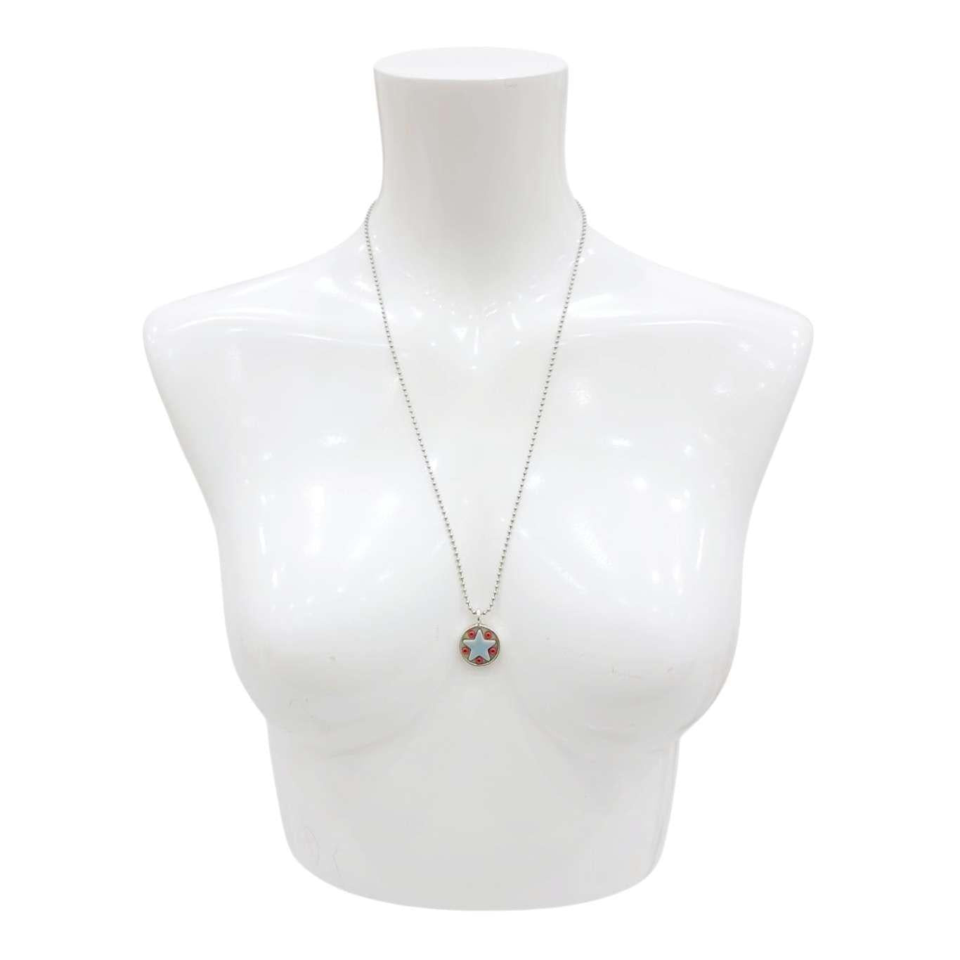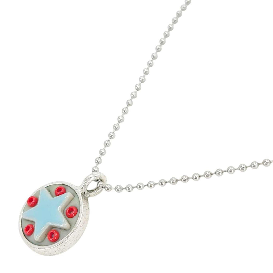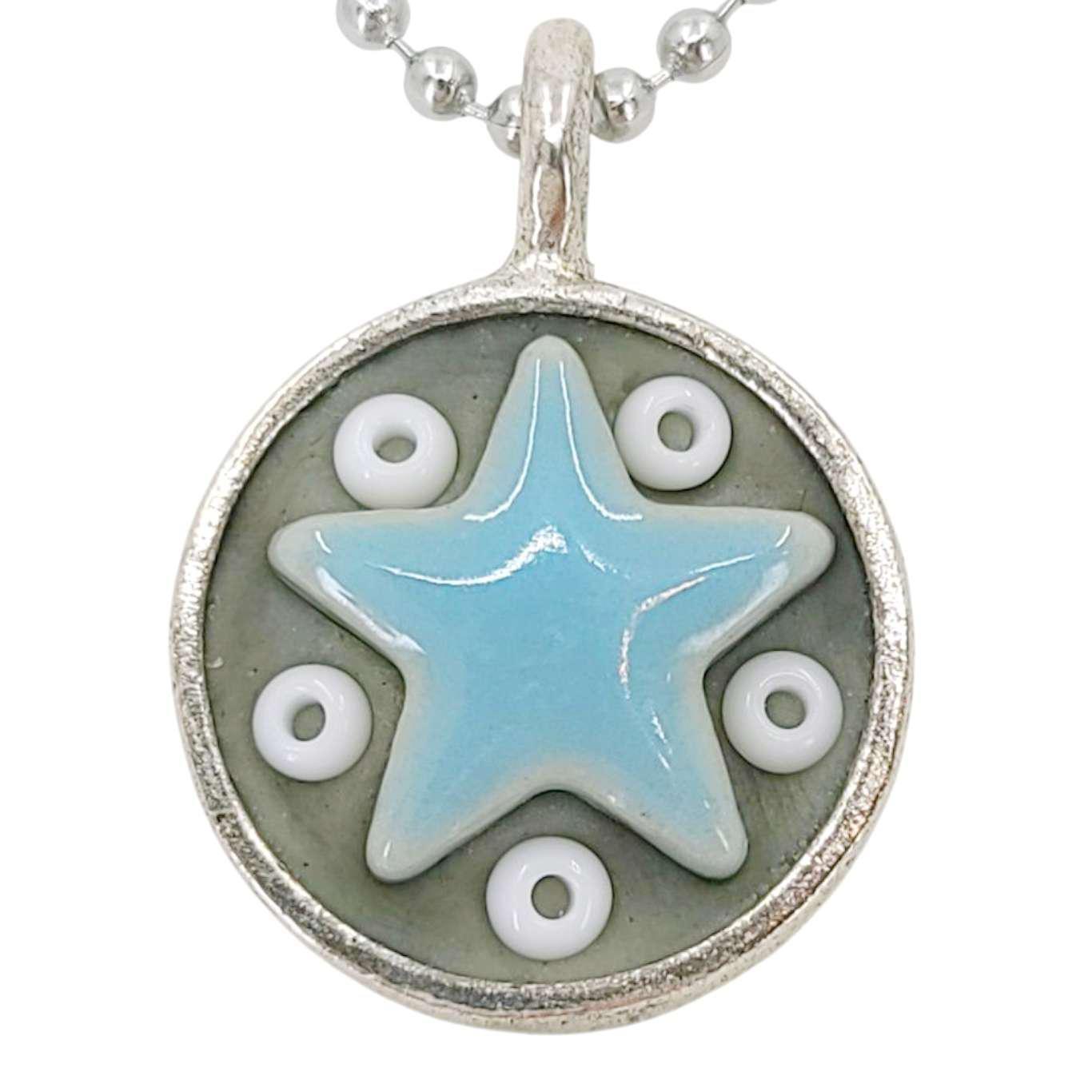 These Star Baby necklaces are a funky pairing of light blue ceramic stars and colorful glass beads in a round silver pendant - choose your favorite combo!